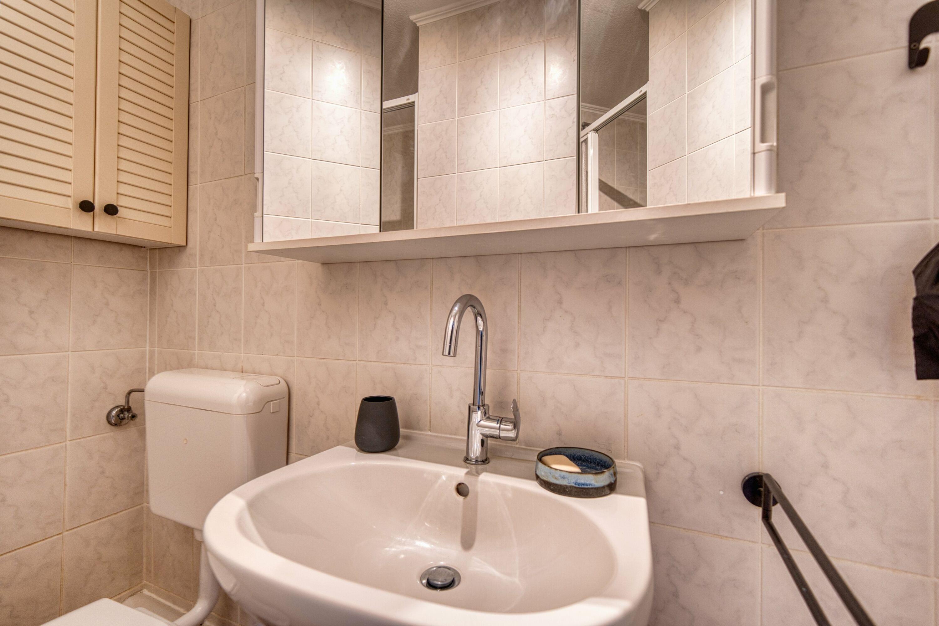 Das Badezimmer verfügt über eine Duschkabine sowie ein WC. Alles ist gepflegt und funktional – ideal für Familien, die Wert auf Komfort und Sauberkeit legen.