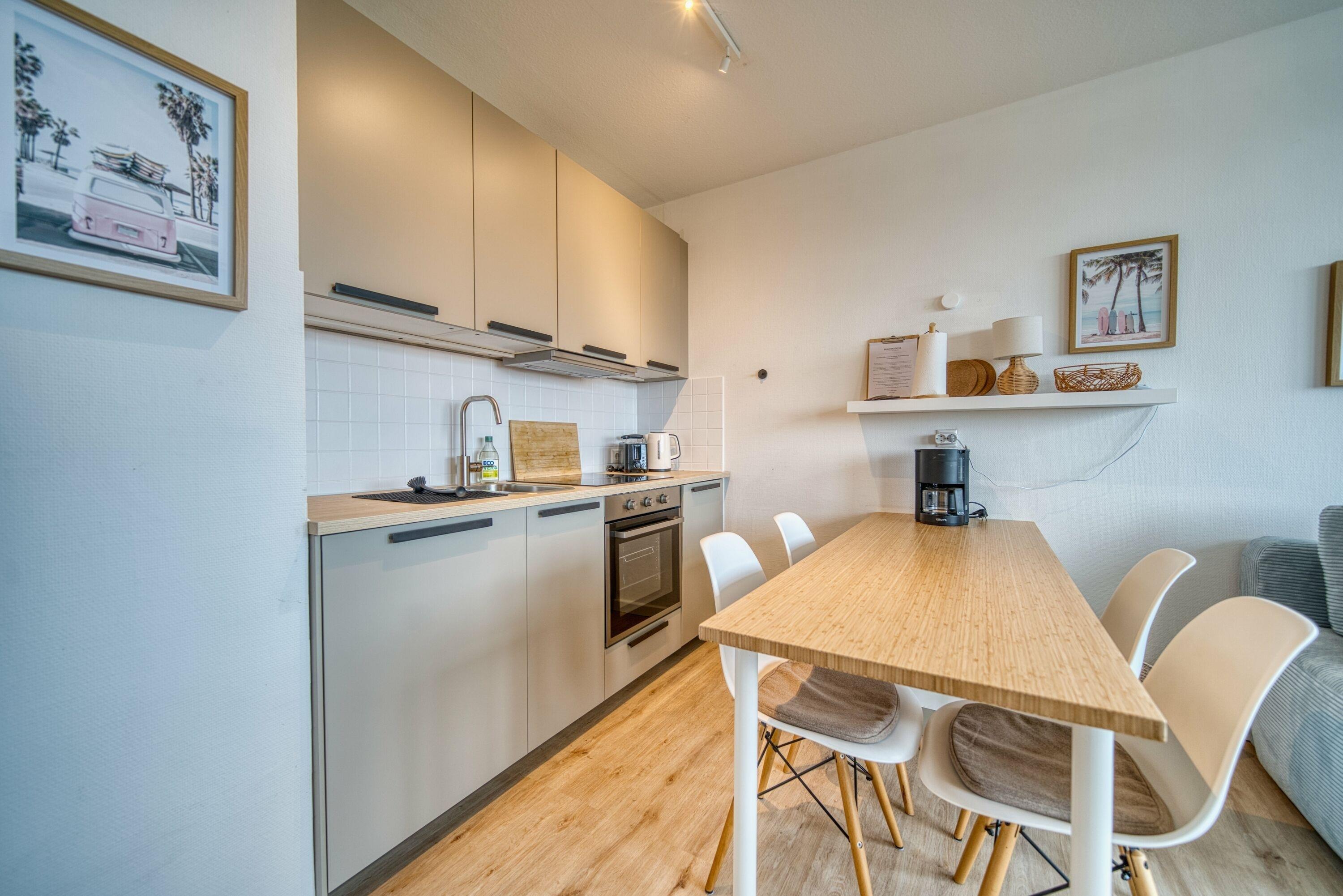 Die neue moderne Küche ist mit allem ausgestattet, was Sie für einen entspannten Aufenthalt benötigen. Zur Ausstattung gehören: