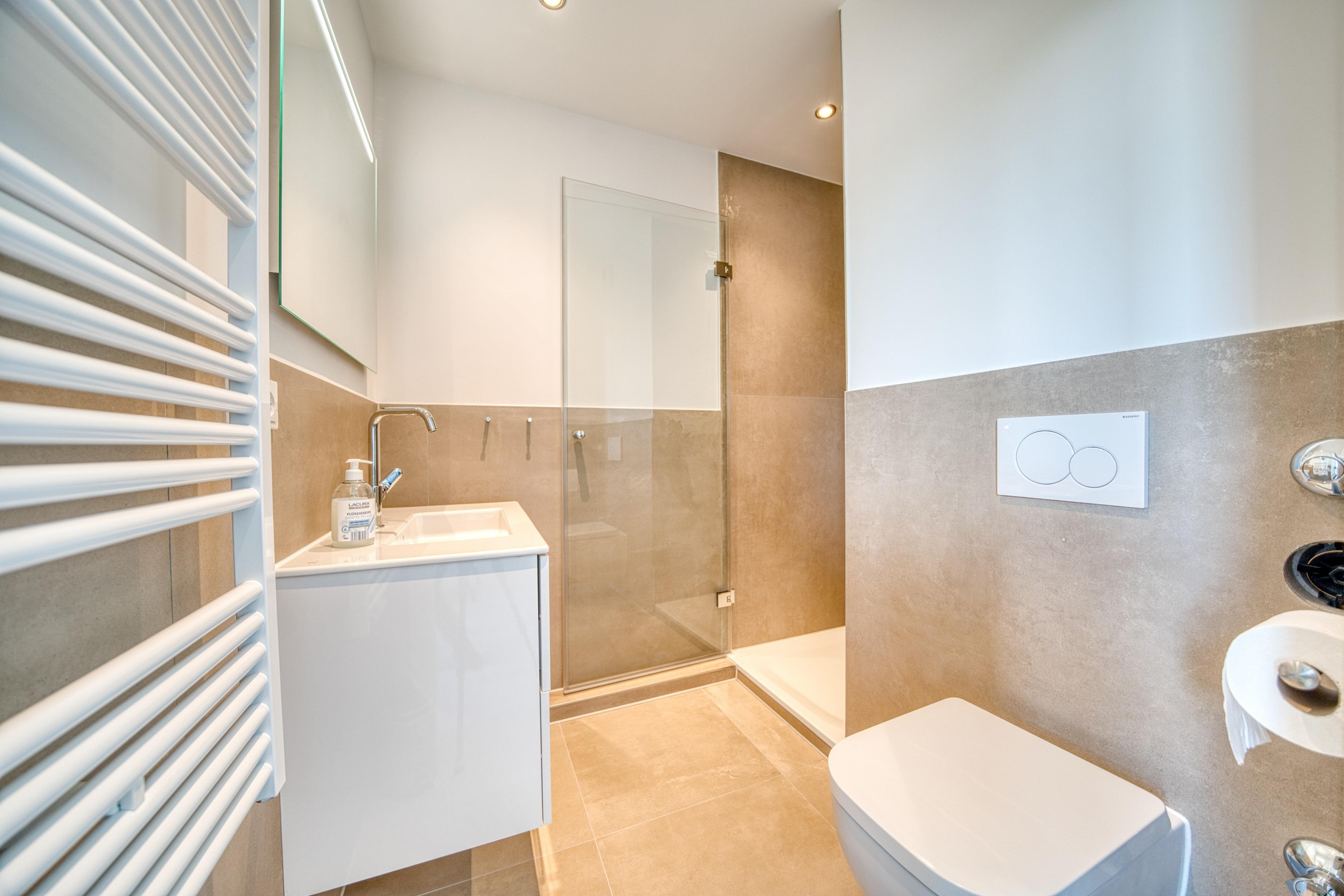 Frisch, modern, komfortabel:Das Badezimmer punktet mit einer großzügigen Dusche, moderner Ausstattung und viel Helligkeit – hier startet der Tag mit einem Lächeln.