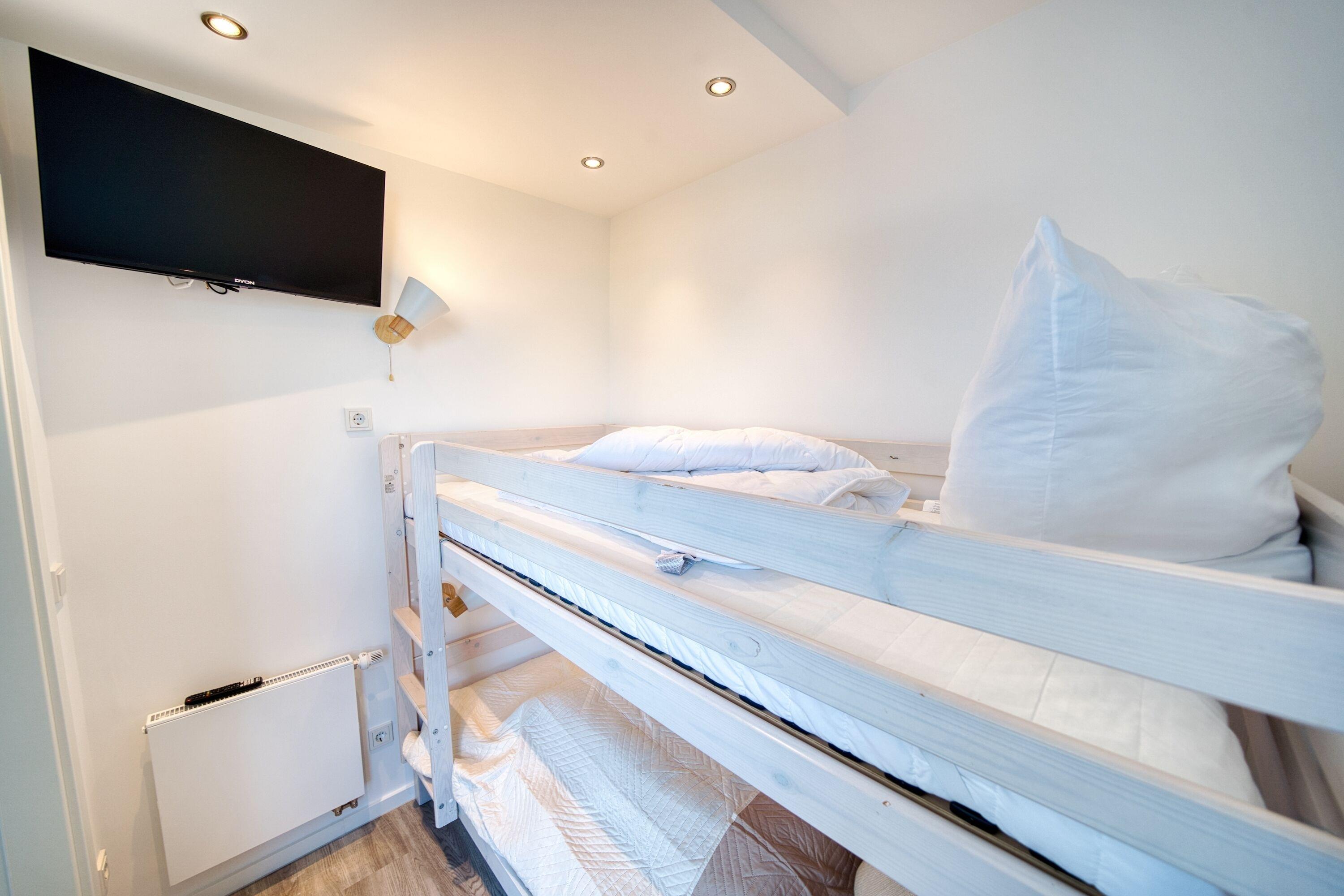 Die stilvolle Wohnung ist ideal für Familien oder Gruppen von bis zu 5 Personen und bietet eine durchdachte Raumaufteilung. Der Wohnbereich mit großzügigem Flachbildfernseher und ausziehbarem Sofa lädt zum Verweilen ein. Im Kinderzimmer mit TV mit Etagenbett können die Kleinen gemütlich schlafen, während die Eltern sich im separaten Schlafbereich mit Doppelbett (180x200cm) und eigenem TV entspannen.