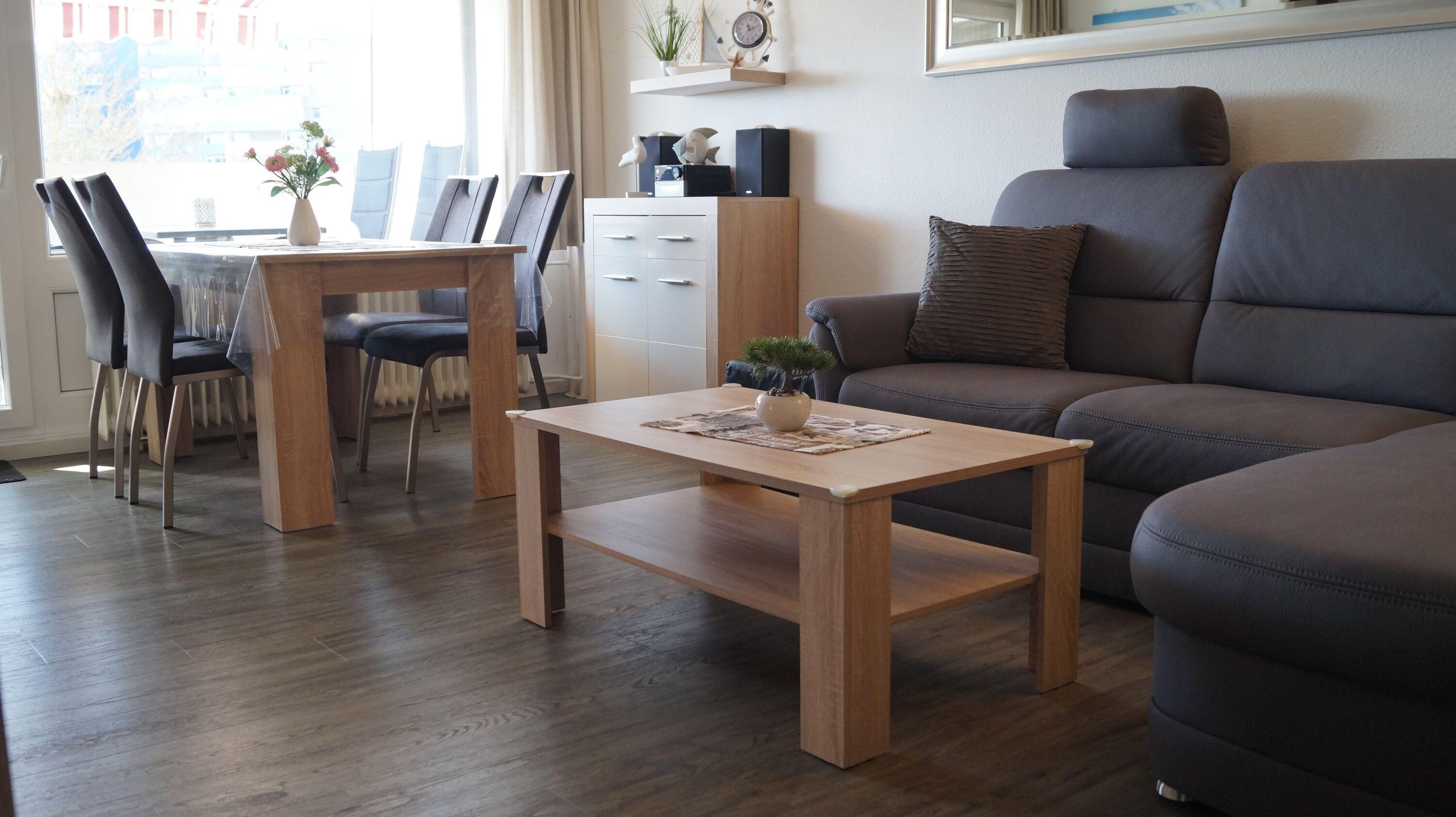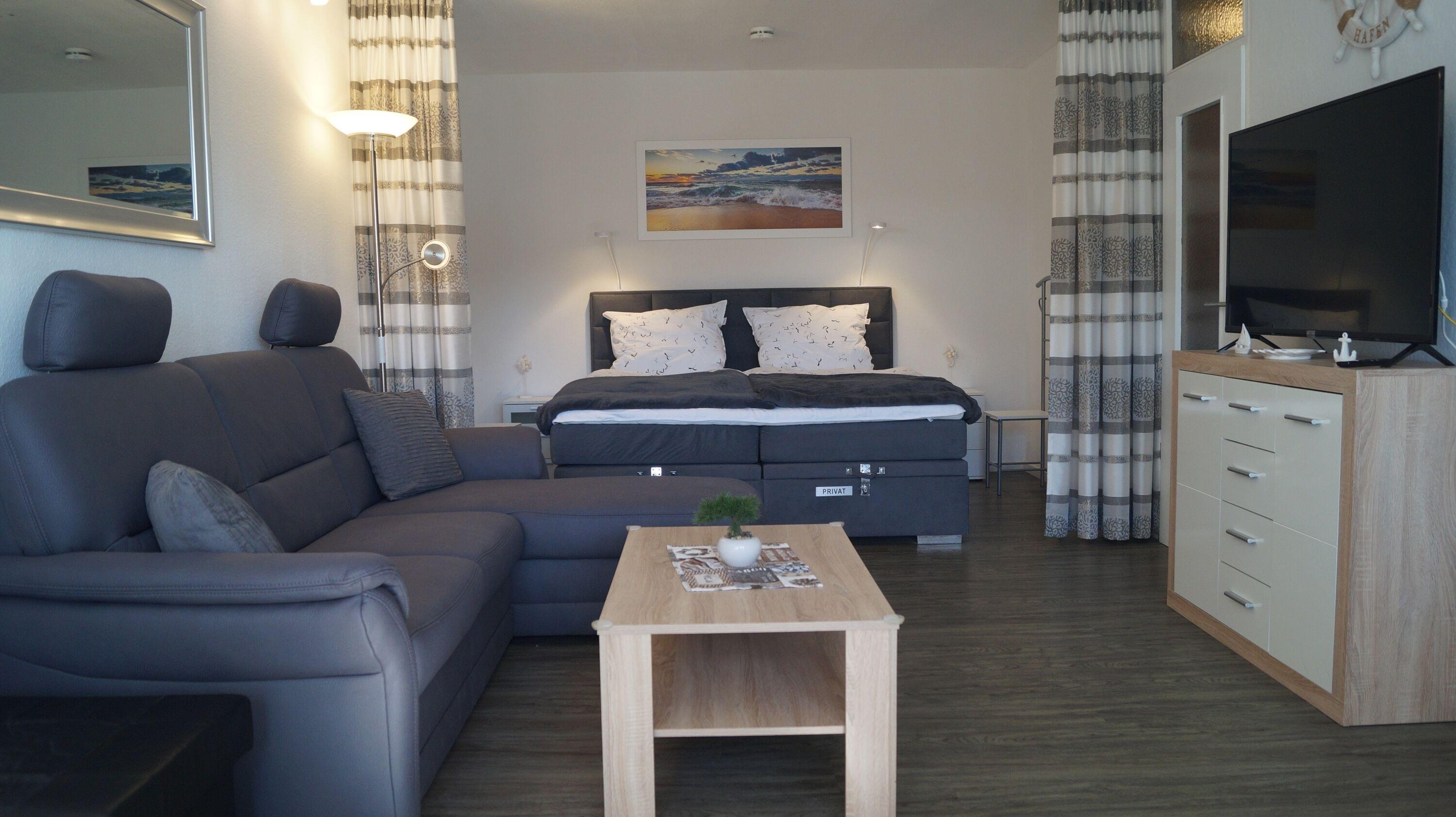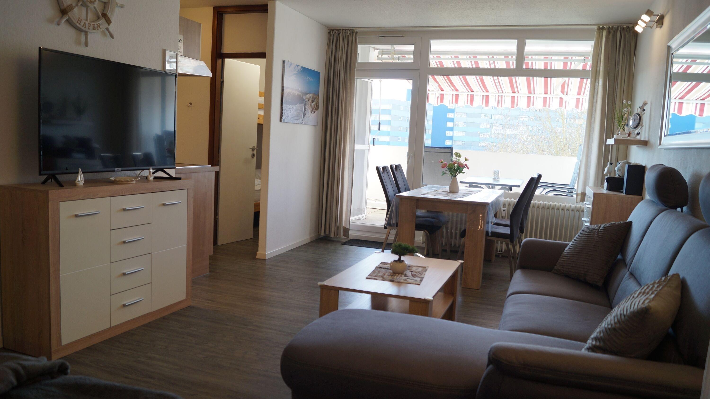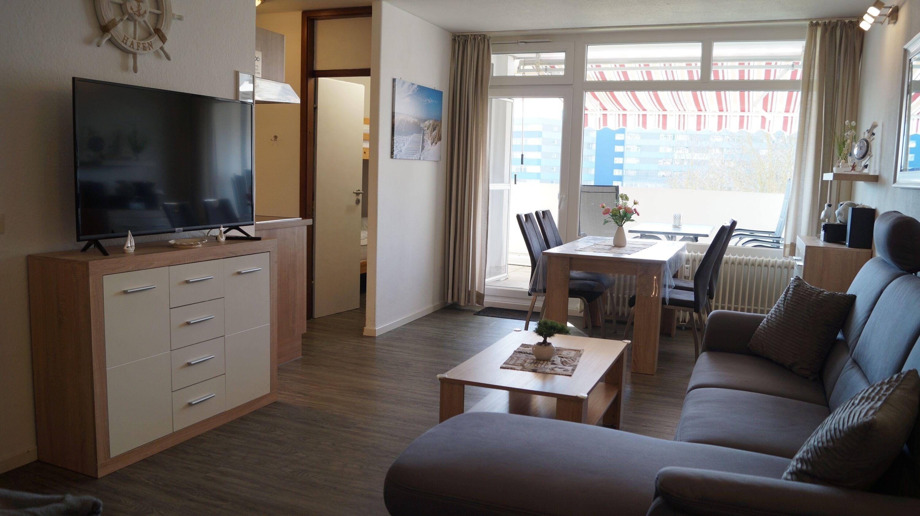 Insgesamt verfügt die Wohnung über eine Wohnfläche von 51 qm, die wie folgt aufgeteilt ist: ein Wohn- und Esszimmer mit einem großen Flachbildfernseher und einer Musikanlage, ein Schlafbereich mit einem Doppel-Boxspringbett (180 × 200 cm), der durch einen Vorhang vom Wohnzimmer abgetrennt werden kann, ein separates Kinderzimmer mit einem Etagenbett, eine komplett ausgestattete Küche mit Kühlschrank und Gefrierfach, 4-Plattenceran und verschiedenen Kleingeräten (wie z.B. Senseo, Toaster, Kaffeemaschine, Wasserkocher, Mikrowelle, Mixer, Eierkocher), sowie ein Badezimmer mit WC und Dusche. Das Kinderzimmer ist mit Verdunkelungsrollos und die Wohnräume mit Vorhängen ausgestattet. Zusätzlich sind an allen Fenstern mechanische Jalousien zur Verdunklung vorhanden. Die Wohnung bietet Platz für maximal 4 Personen und ist ein Nichtraucherappartement, in dem Haustiere nicht erlaubt sind. Als Bonusleistung steht WLAN zur Verfügung.
