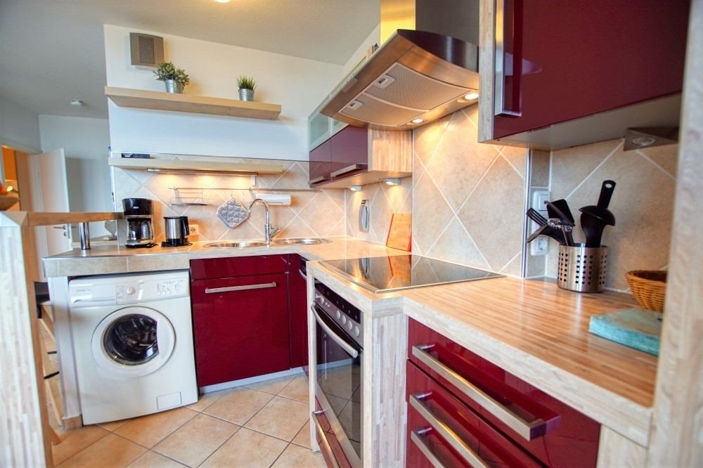 komplett ausgestattete Küche mit Backofen, 4-Ceranfeld, Geschirrspüler, Kühlschrank, Gefrierschrank, Waschmaschine [&] Trockner