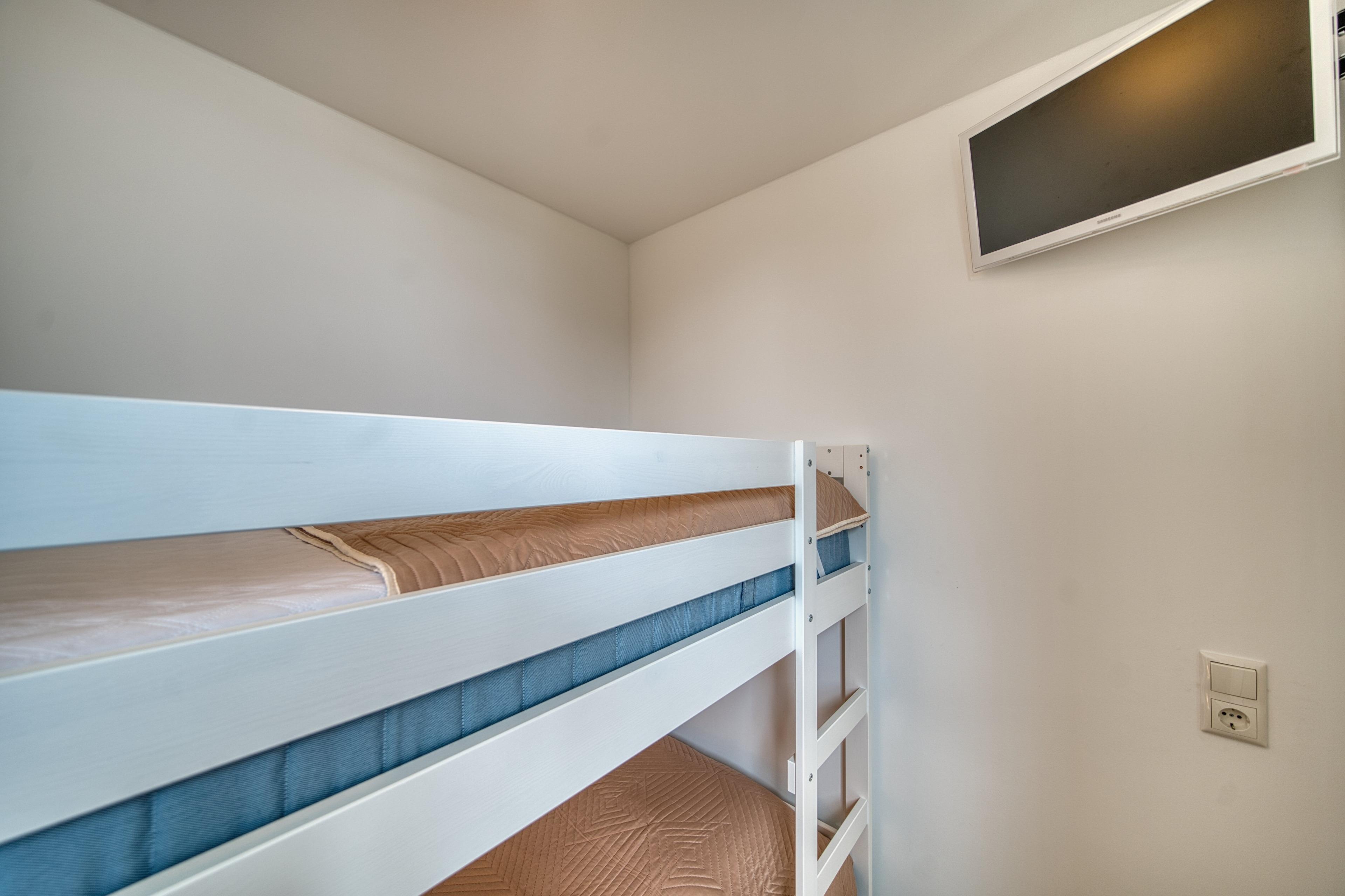 Kinderzimmer: Das Kinderzimmer bietet ein praktisches Etagenbett sowie einen eigenen TV