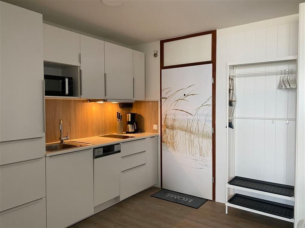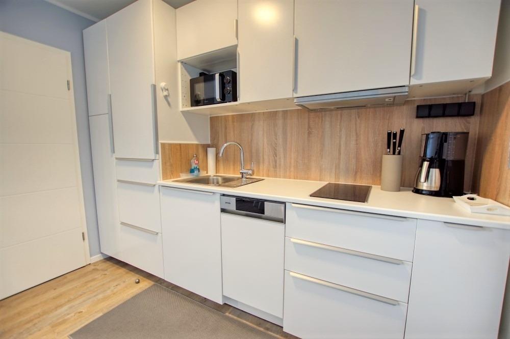 Offene Küche im EingangsbereichInduktionsherd, Mikrowelle, GeschirrspülerKühlschrank mit GefrierfachFilterkaffeemaschine, Wasserkocher, Toaster
