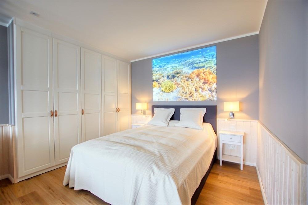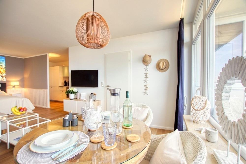 Große Fensterflächen und eine geschmackvolle, maritime Gestaltung sorgen für Leichtigkeit und Weite.
