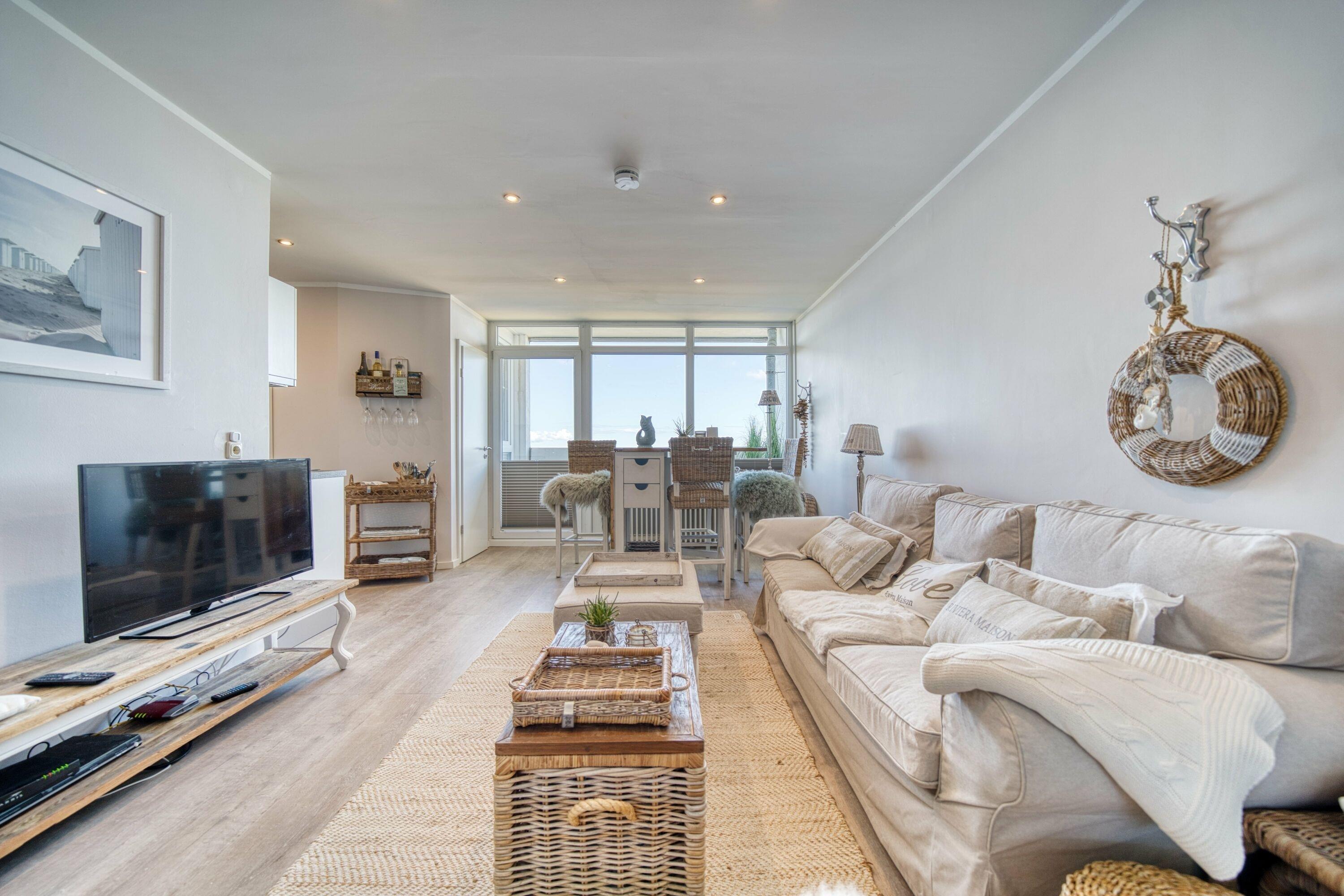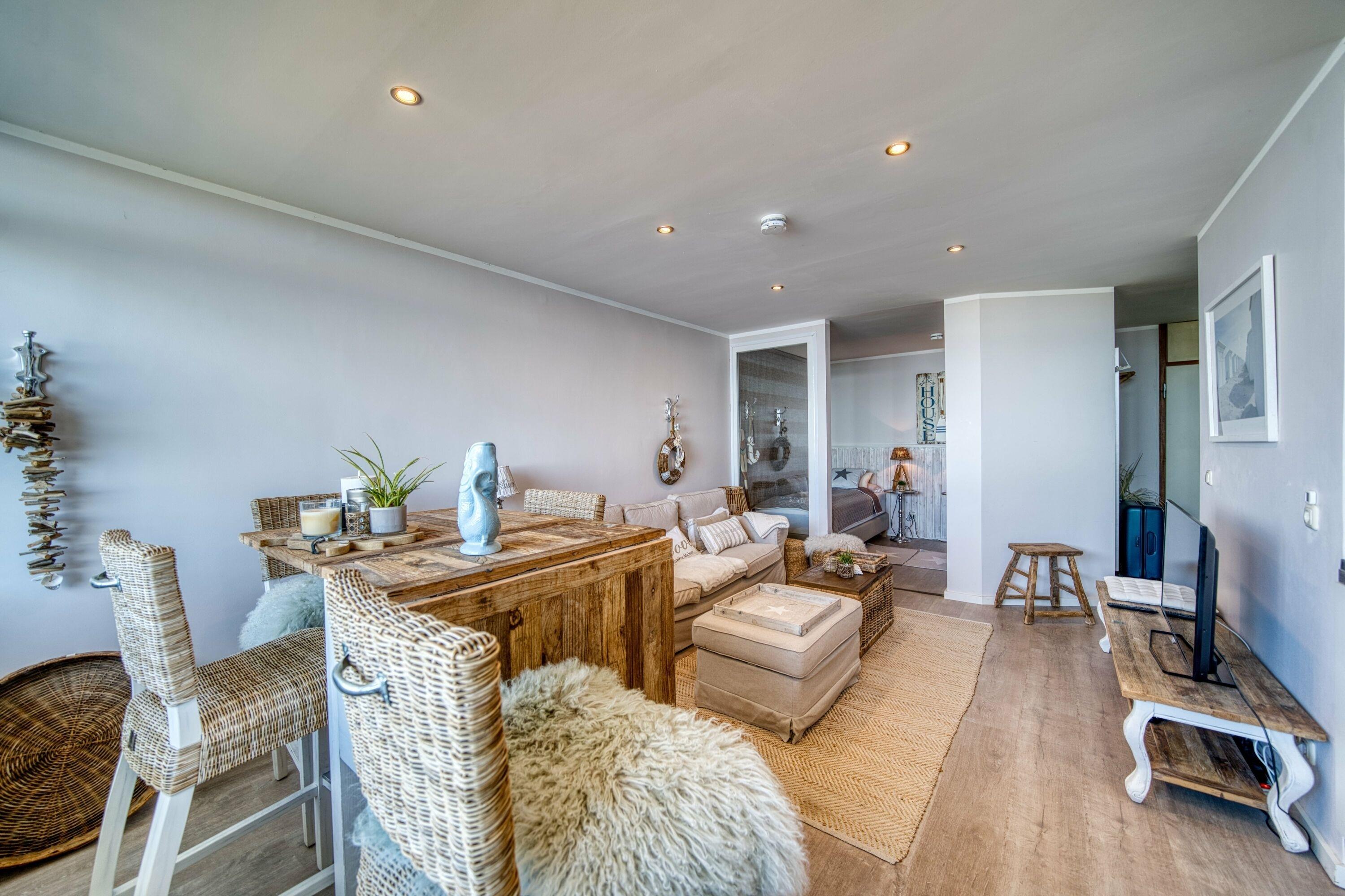 In dieser Ferienwohnung erwartet Sie eine liebevoll gestaltete Einrichtung im Beachhouse-Stil. Hochwertige Riveria Maison Möbel schaffen eine elegante, aber gleichzeitig entspannte Atmosphäre. Hier können Sie in einer stilvollen Umgebung zur Ruhe kommen und den Alltag hinter sich lassen. Der perfekte Ort, um sich zu erholen und den Charme dieser Unterkunft zu genießen.