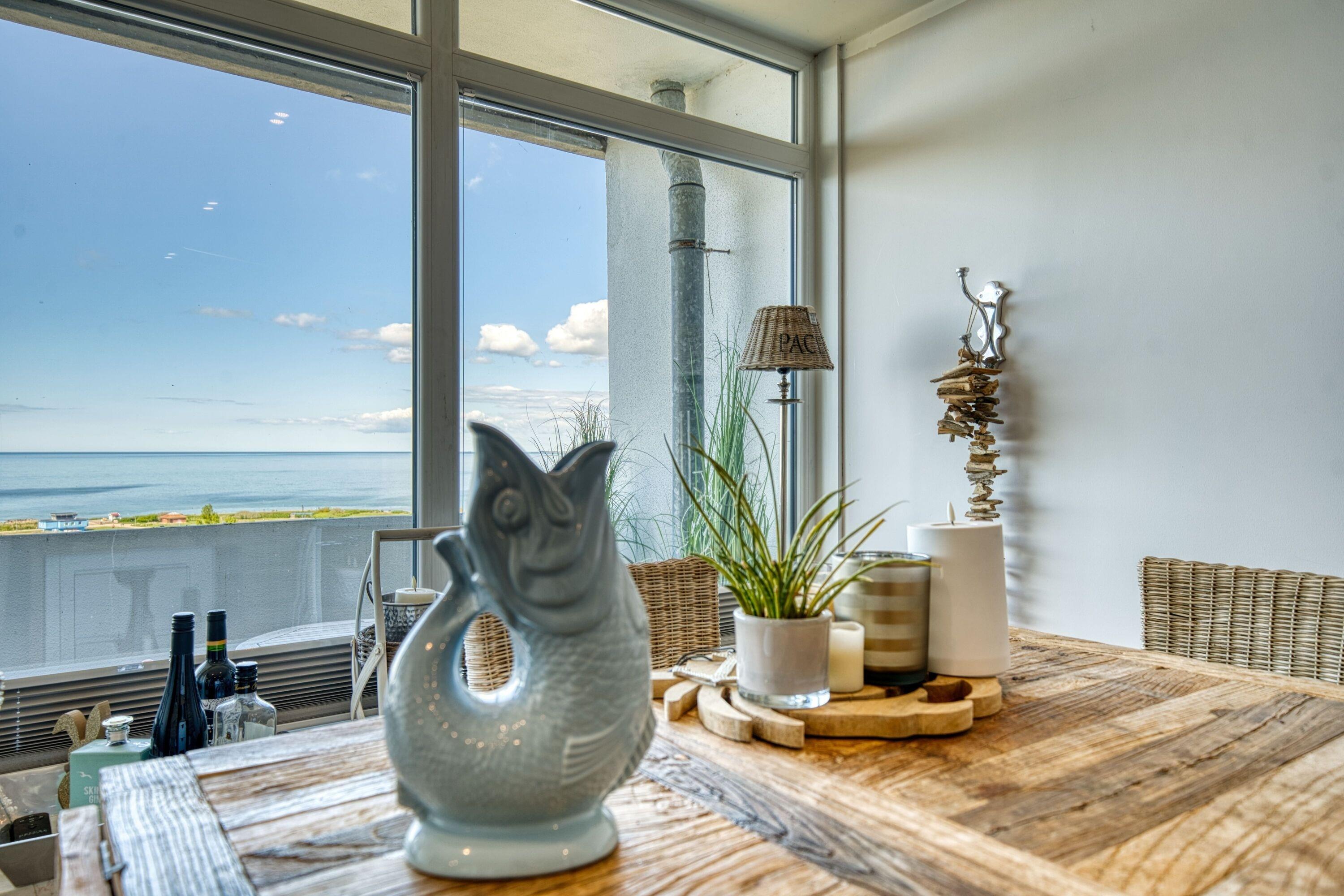In der Wohnung können Sie Ihre Mahlzeiten in einer modernen, voll ausgestatteten Küche zubereiten. Das 4-flammige Cerankochfeld, der Backofen und der Geschirrspüler bieten Ihnen alles, was Sie für eine stressfreie Selbstverpflegung brauchen. Genießen Sie Ihre kulinarischen Kreationen im Essbereich oder draußen auf dem Balkon mit Ostseeblick.