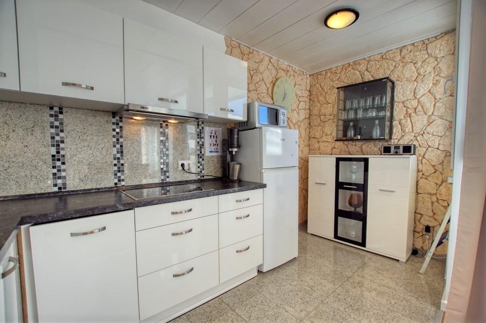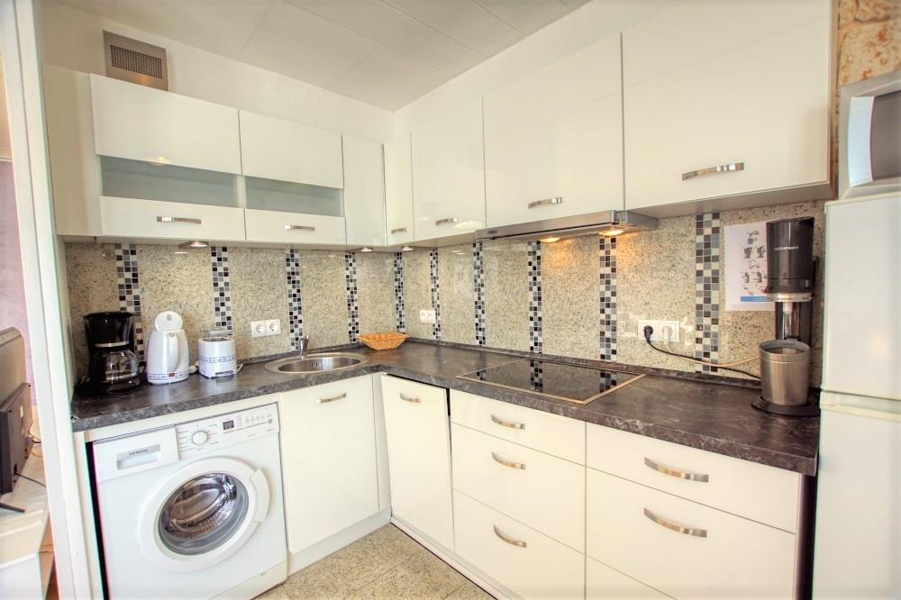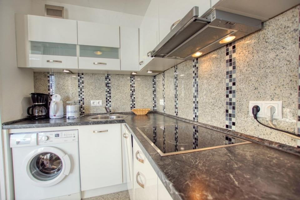 komplett ausgestattete Küche mit Geschirrspüler, Waschmaschine, Mikrowelle, Kühlschrank, 4-Platten-Ceran-Kochfeld und Mini-Backofen