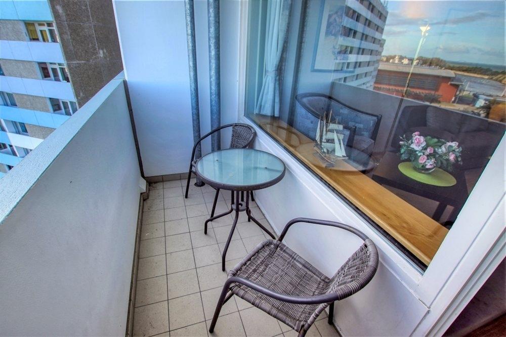Die Wohnung befindet sich im Haus D des Ferienparks, in der 6. Etage, mit Balkon zur Nordseite, der einen herrlichen Blick auf die Ostsee bietet.