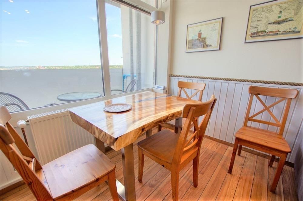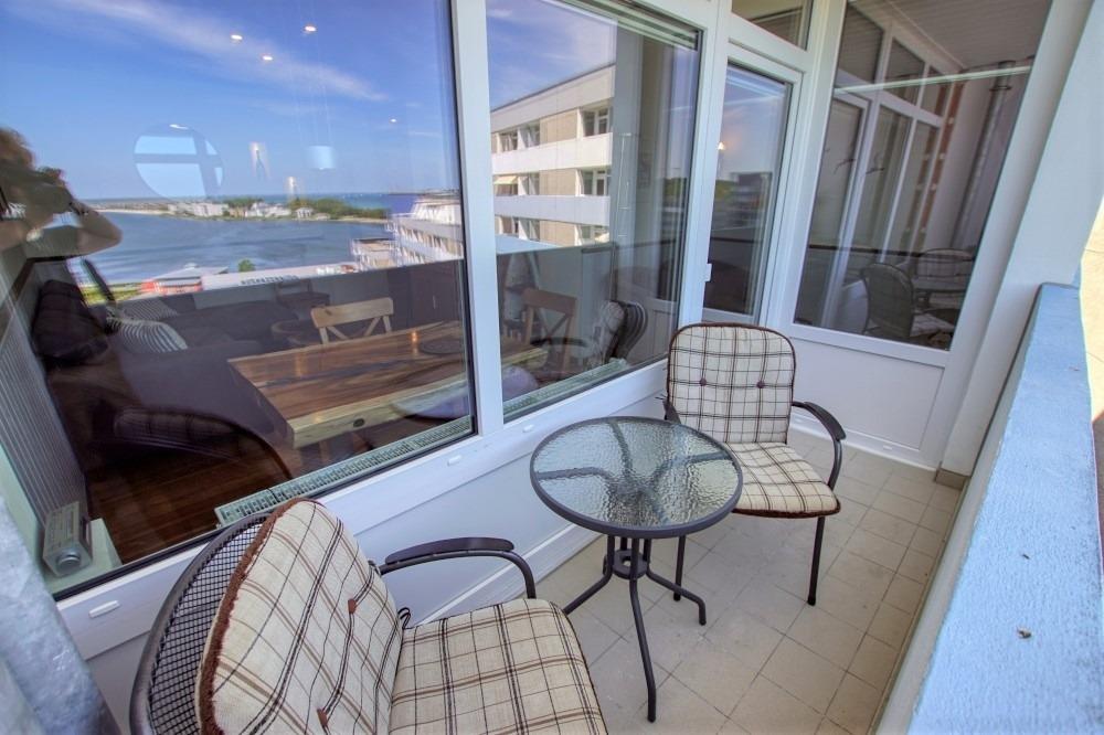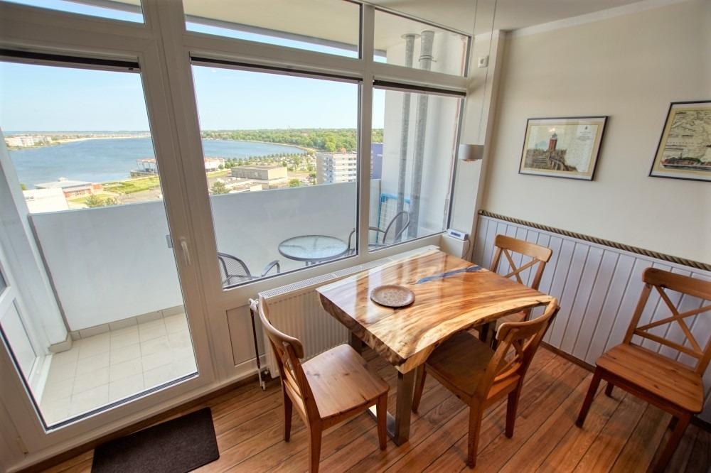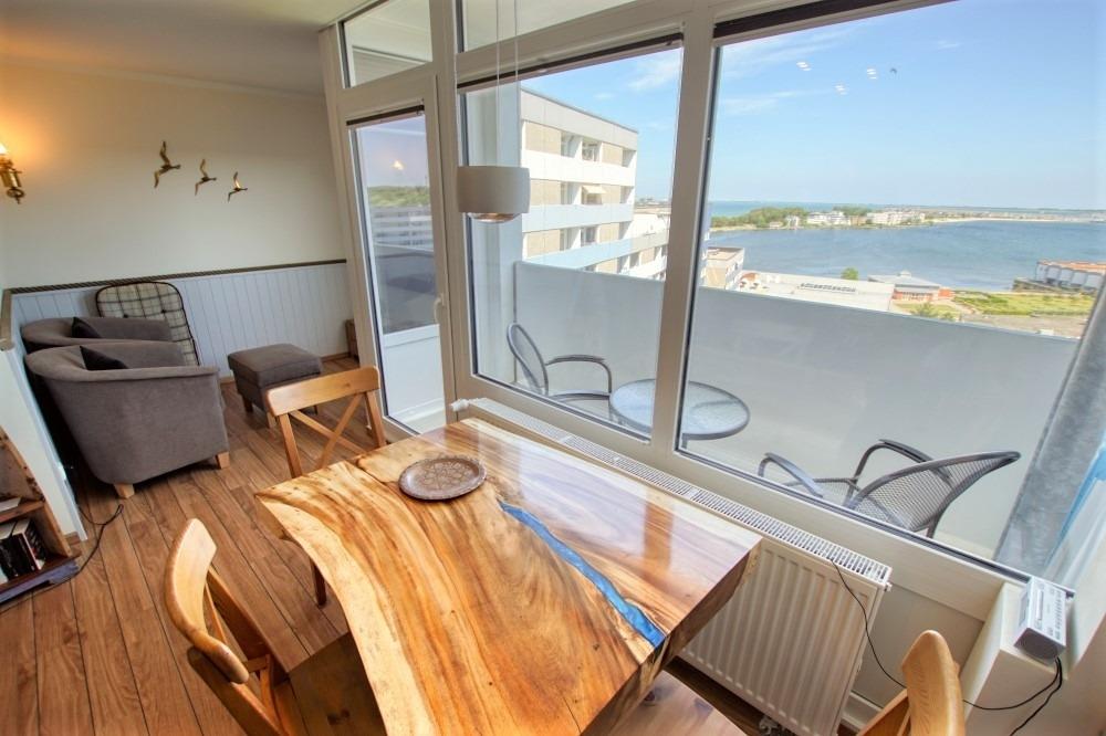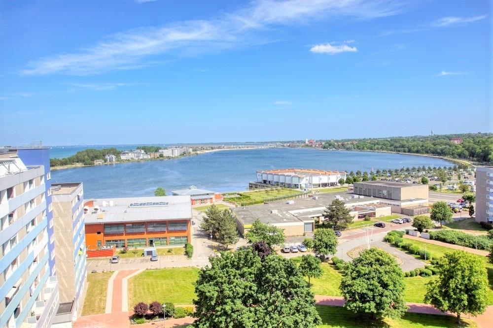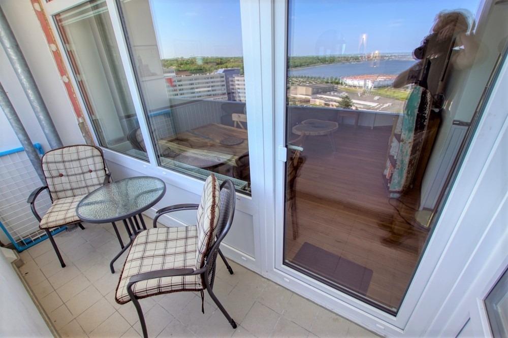 Die Ferienwohnung im Haus E, 11. Etage, mit Balkon, bietet viel Sonne und einen schönen Blick auf die Ostsee sowie den großen Binnensee.