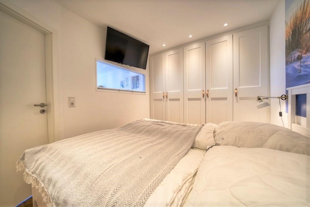 Separater Elternschlafbereich mit Doppelbett und TV