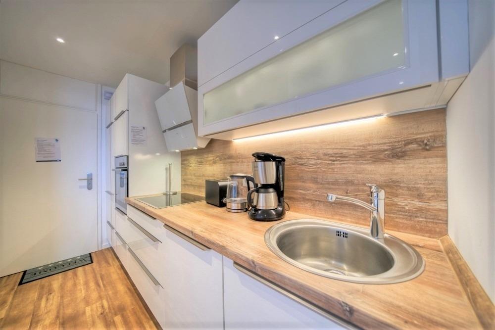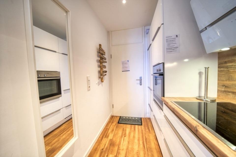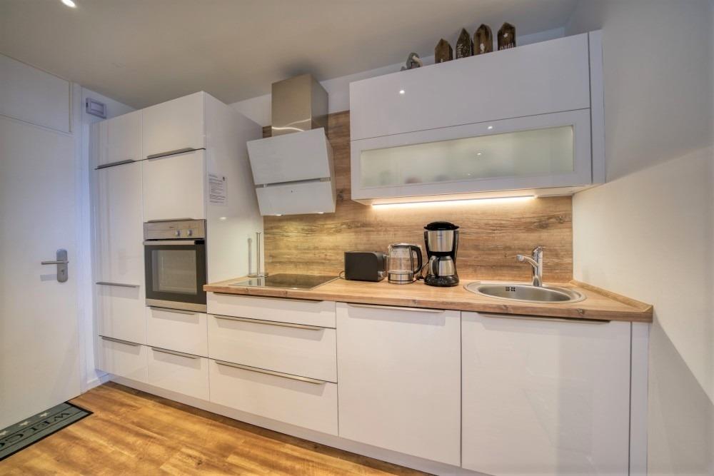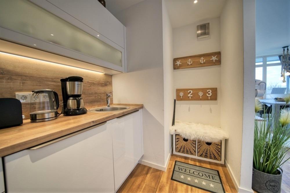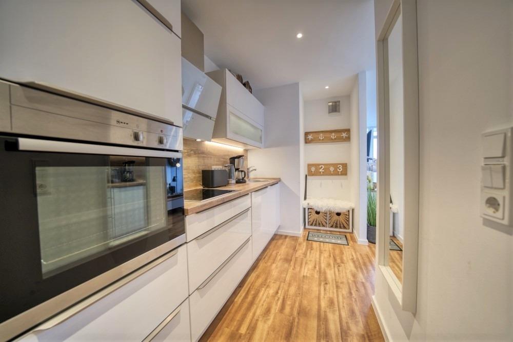 Modern ausgestattete Küche im Eingangsbereich mit