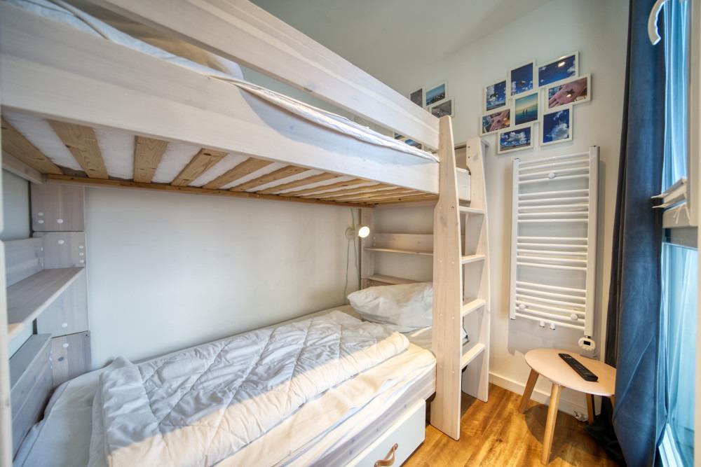 Kinderzimmer mit Etagenbett, verdunkelbar durch Plissees – ideal für einen erholsamen Schlaf