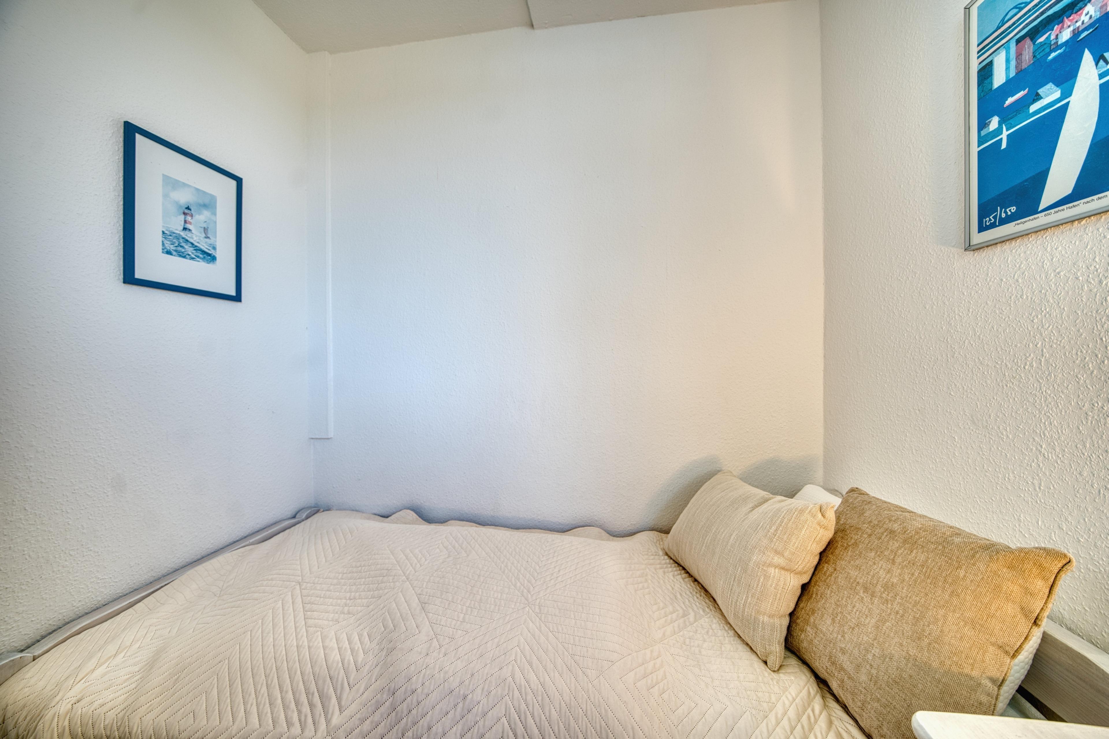 Erleben Sie entspannte Urlaubstage in dieser 45 m² großen Ferienwohnung in der 5. Etage des Hauses F im beliebten Ferienpark Heiligenhafen. Der Balkon zur Westseite bietet einen großartigen Blick auf die Ostsee und den Leuchtturm, ideal für stimmungsvolle Sonnenuntergänge am Meer.