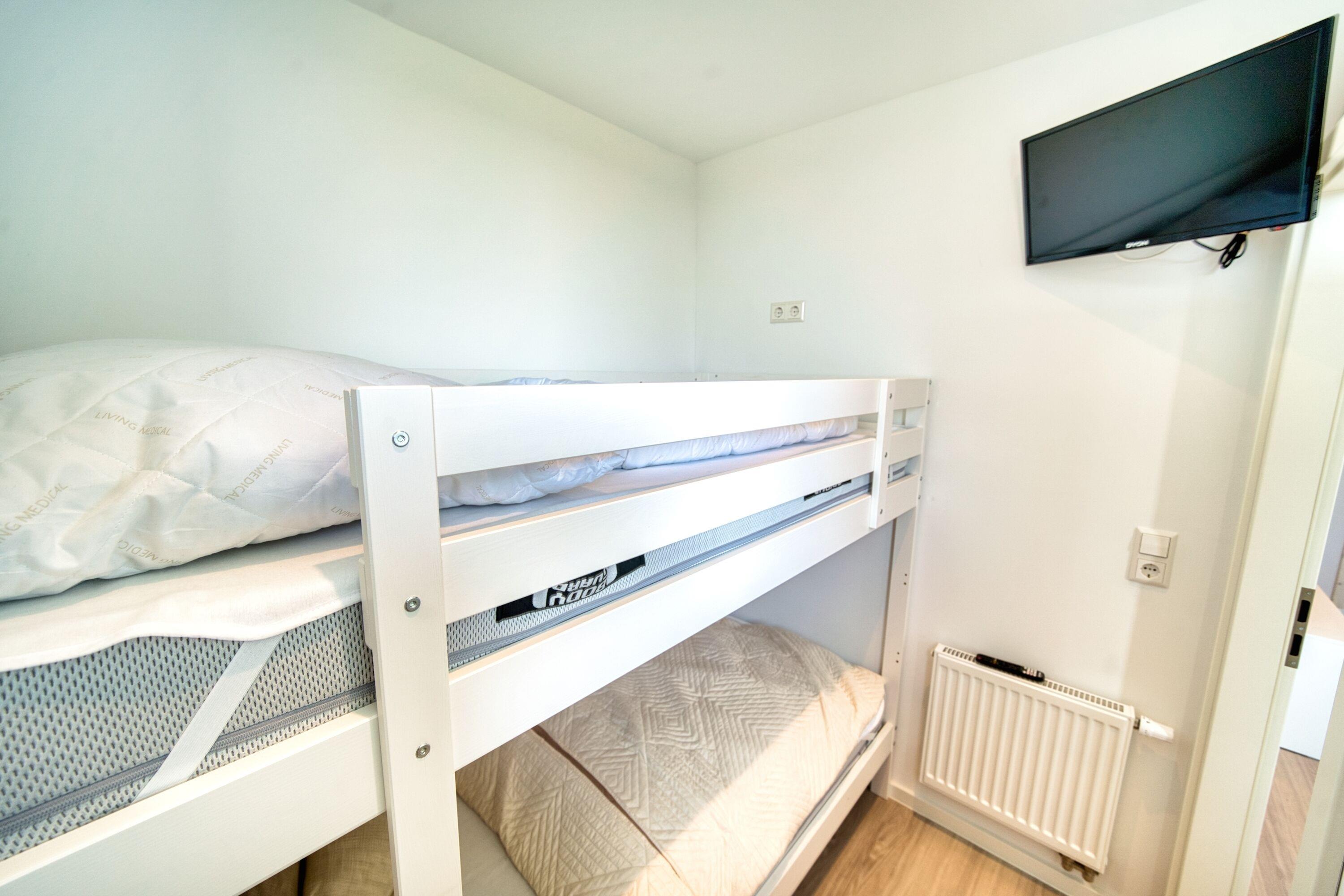 Die stilvolle Wohnung ist ideal für Familien oder Gruppen von bis zu 4 Personen und bietet eine durchdachte Raumaufteilung. Der Wohnbereich mit großzügigem Flachbildfernseher lädt zum Verweilen ein. Im Kinderzimmer mit TV mit Etagenbett können die Kleinen gemütlich schlafen, während die Eltern sich im separaten Schlafbereich mit Doppelbett und eigenem TV entspannen.