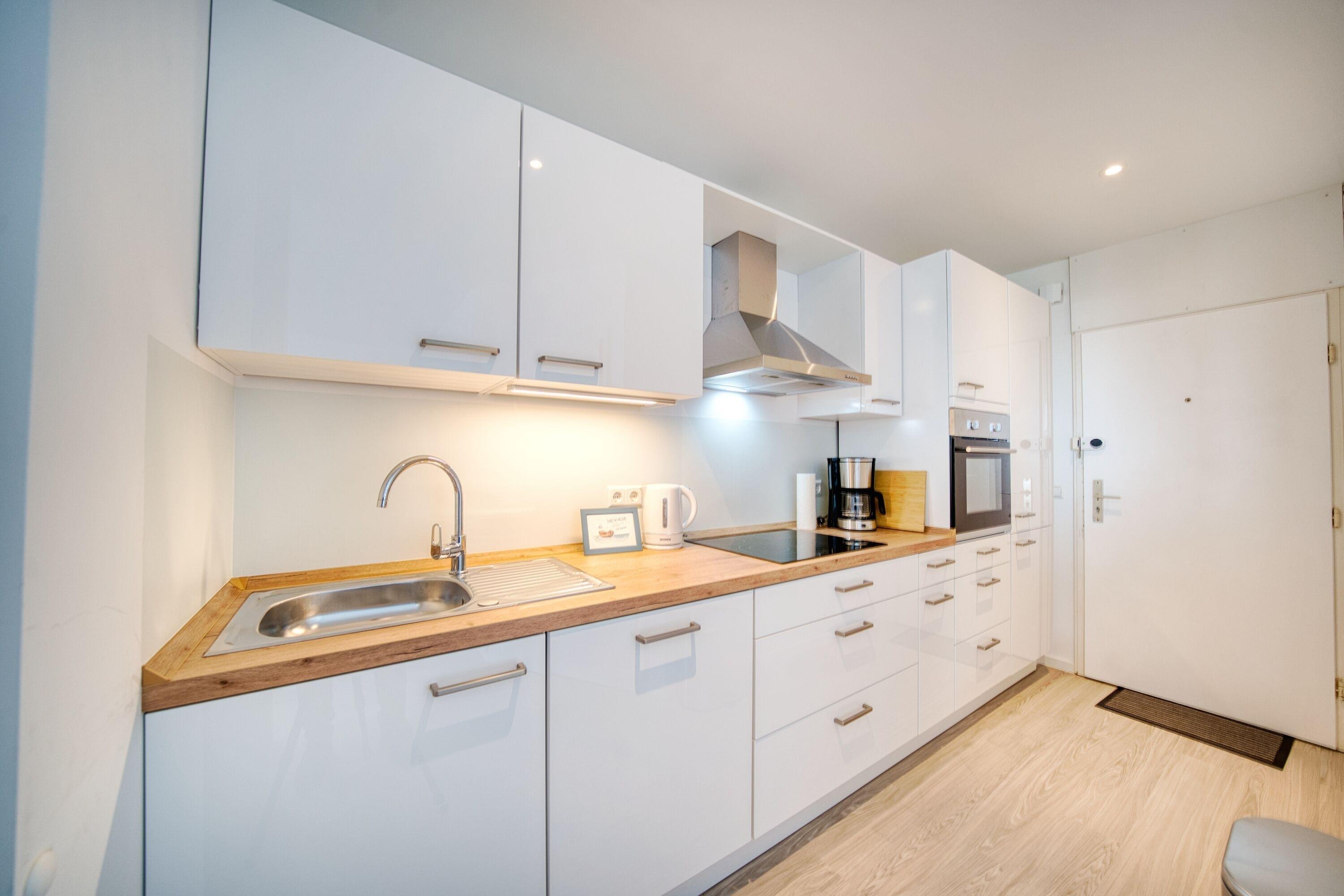 Die hochwertige Küche ist bestens ausgestattet mit Spülmaschine, Backofen, Ceranfeld, Kühlschrank mit Gefrierfach und Kaffeemaschine – hier können Sie Ihre Lieblingsgerichte zubereiten. Das moderne Badezimmer bietet eine großzügige Dusche und neuwertige Ausstattung.