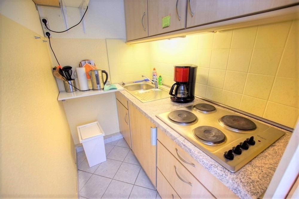 Voll ausgestattete Küche: Kühlschrank mit Gefrierfach, 4-Platten-Herd