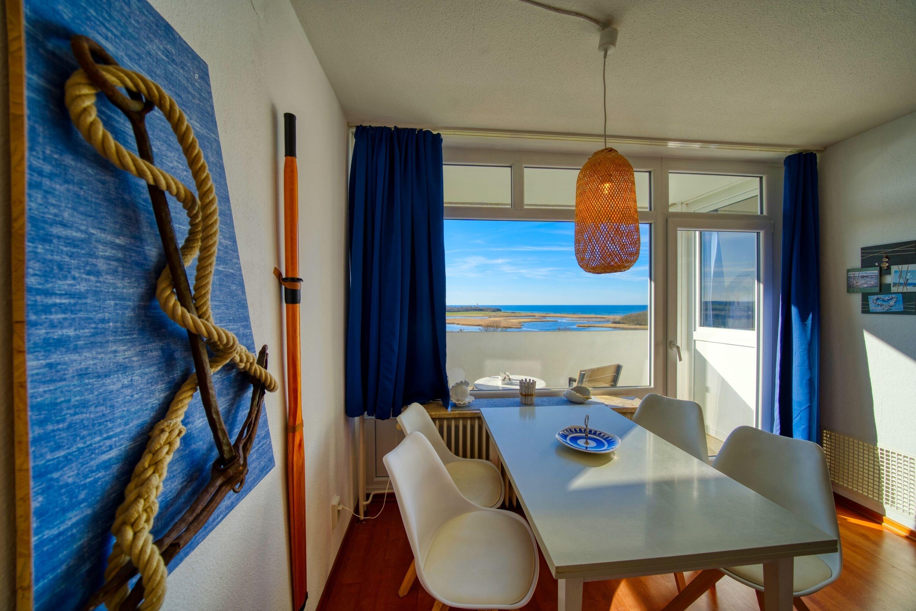 Diese neu ausgestattete Ferienwohnung in der 7. Etage im Haus F des beliebten Ferienparks Heiligenhafen bietet auf 45?m² Wohnfläche ein helles, maritimes Ambiente und genügend Platz für die ganze Familie. Der sonnige Balkon zur Westseite ermöglicht einen unvergesslichen Blick auf die Ostsee und den Leuchtturm – inklusive traumhafter Sonnenuntergänge!
