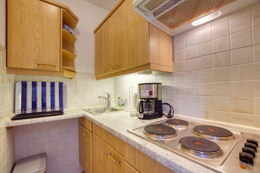 Küche mit 4-Plattenherd, Kühlschrank (ohne Gefrierfach)