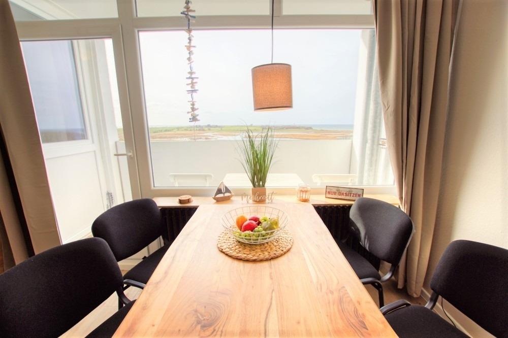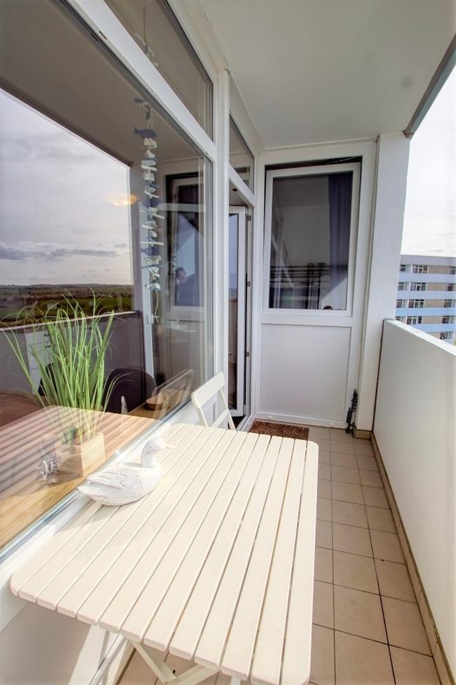 Die wunderschöne Wohnung liegt im Haus G Ferienpark, in der 7. Etage, mit Balkon zur Westseite, der einen herrlichen Blick auf die Ostsee und die Salzwiesen bietet.