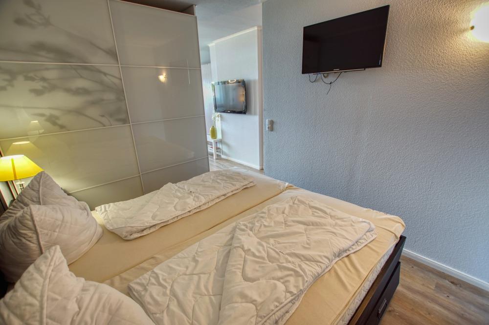 Separater Elternschlafraum mit großem Doppelbett