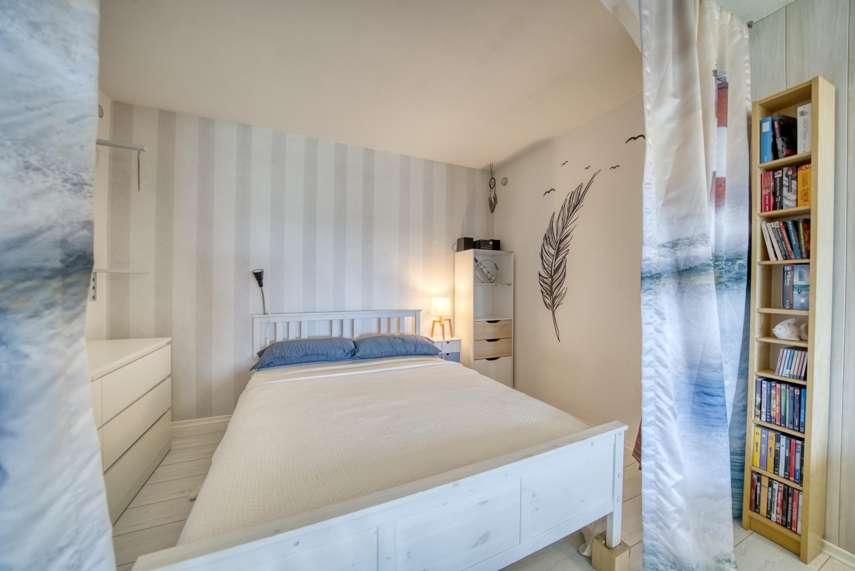 Heller Wohn-Schlafbereich mit Doppelbett für erholsame Nächte