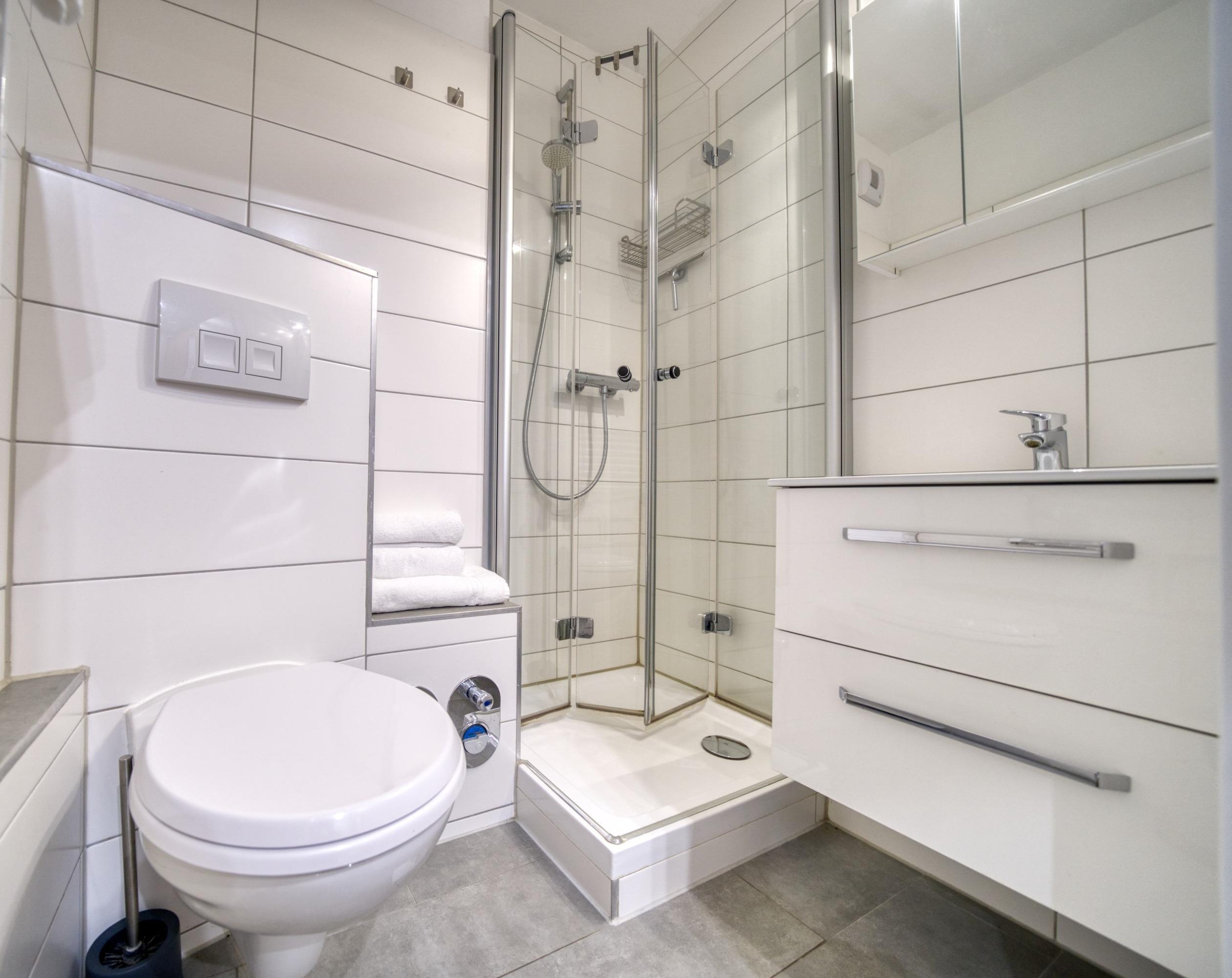 Aktiv-Hus mit Wellness, Sport und Spiel sowie Ladenzeile mit Restaurants, Bäckern und Geschäften nur 30 m entfernt