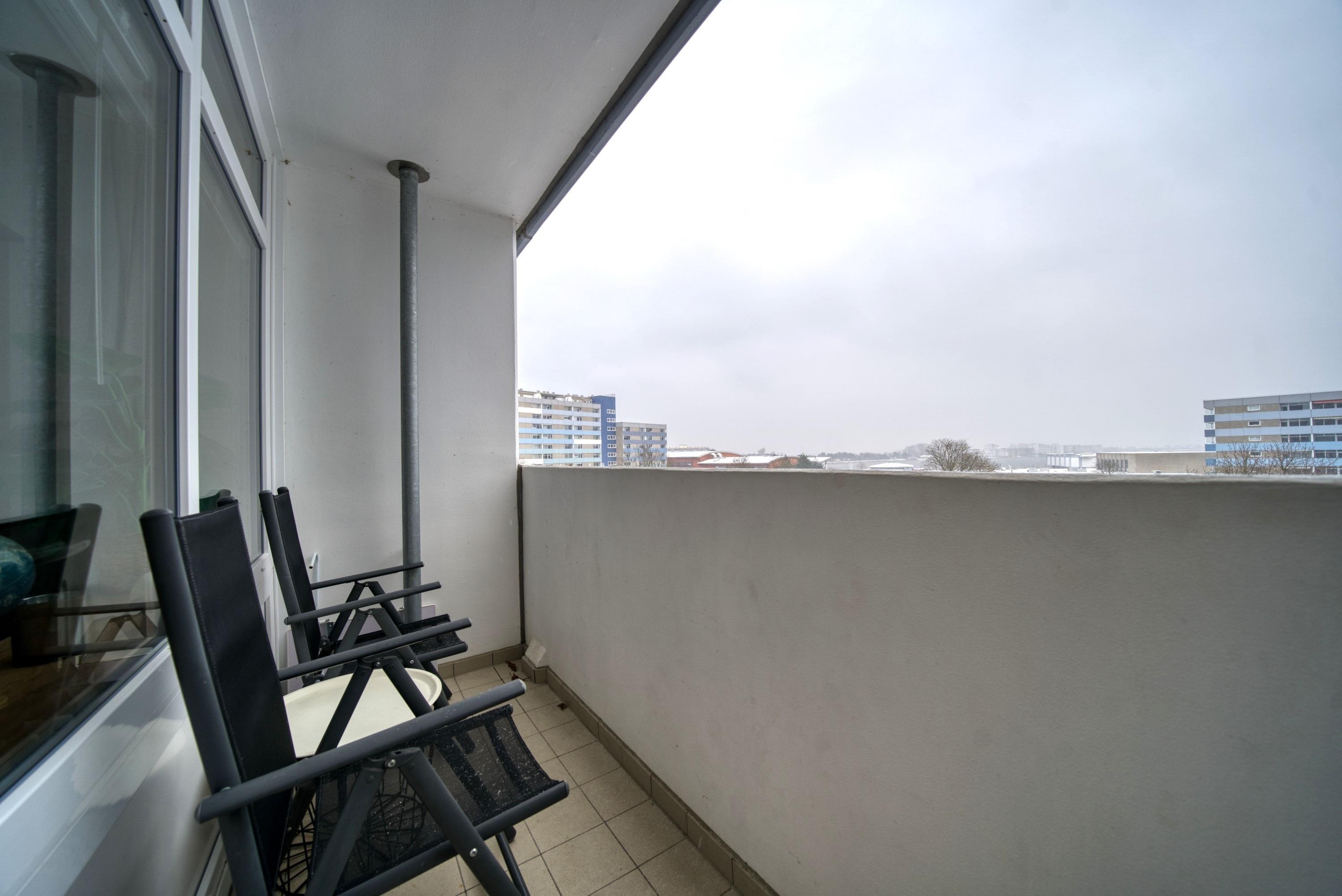 Erleben Sie einen unvergesslichen Urlaub in unserer modernen 45 m² großen Ferienwohnung im Haus H, 4. Etage des beliebten Ferienparks Heiligenhafen. Der Balkon bietet einen traumhaften Blick auf Ostsee und Binnensee sowie Sonne von Mittag bis in die Abendstunden. Zwei bequeme Hochlehner mit Sitzpolstern und ein Beistelltisch laden zum Entspannen ein.