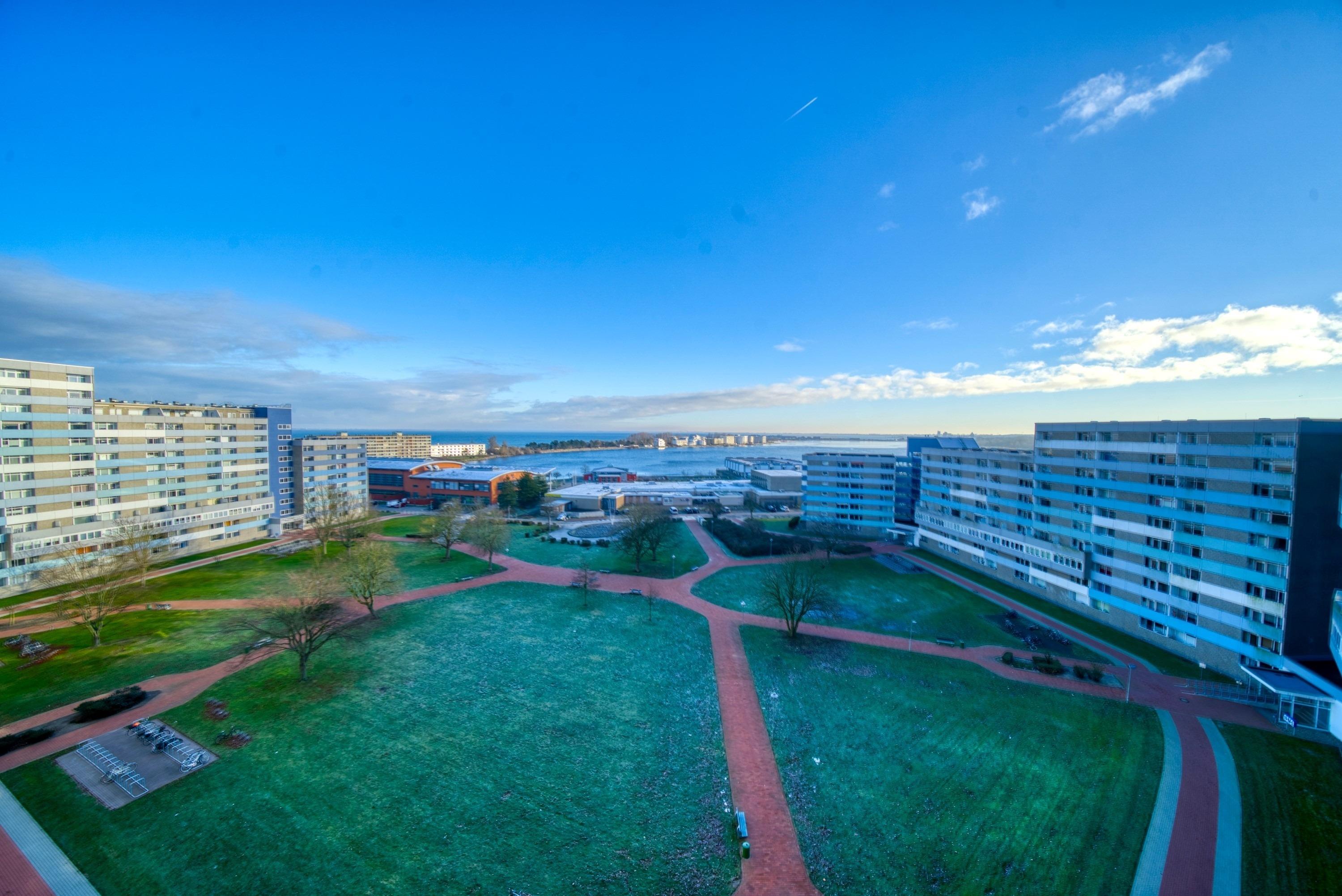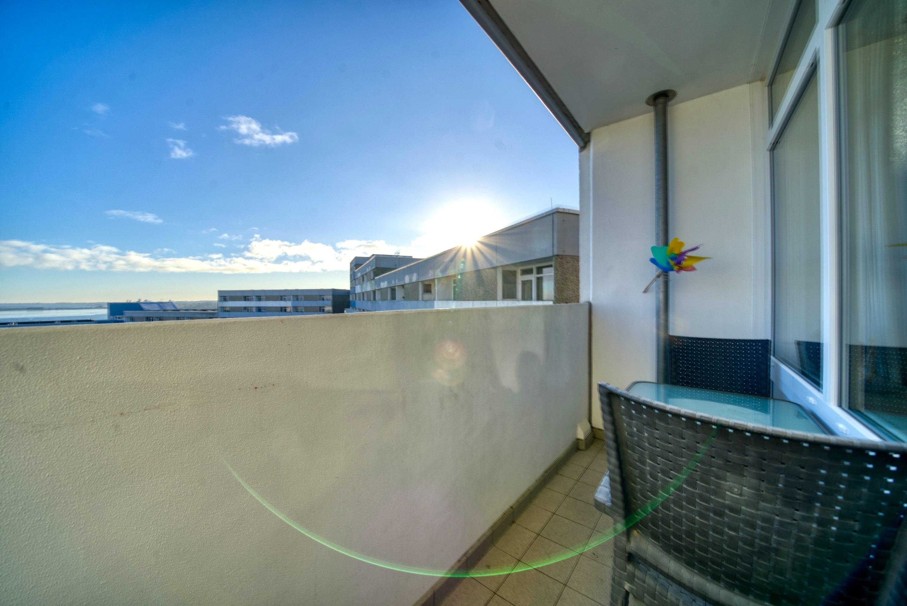 Die Wohnung liegt im Haus H Ferienpark, in der 9. Etage, mit Balkon zur Ostseite, der einen herrlichen Blick auf die Ostsee mit Fehmarnsundbrücke sowie den Binnensee mit Stadt und Yachthafen bietet.