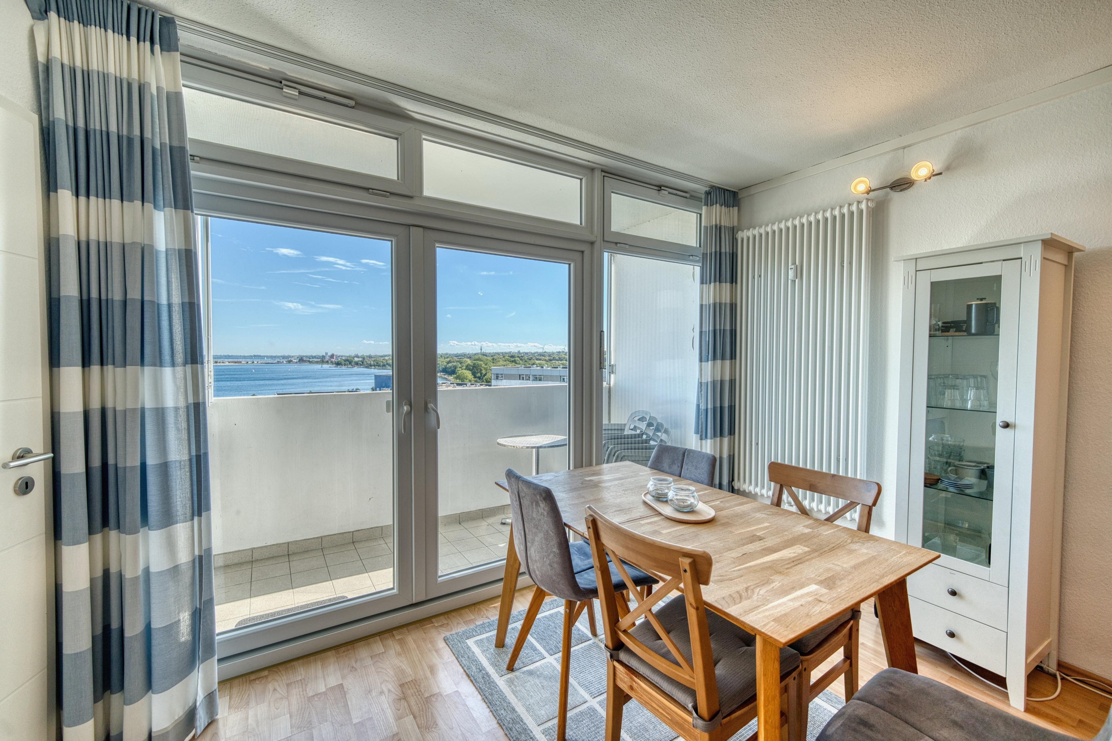 Diese modern eingerichtete Wohnung liegt im Haus H Ferienpark, in der 11. Etage, mit Balkon zur Ostseite, der einen herrlichen Blick auf die Ostsee mit Fehmarnsundbrücke sowie den Binnensee mit Stadt und Yachthafen bietet.
