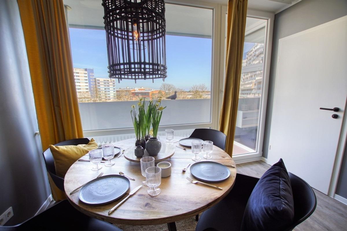 Genießen Sie Ihren Ostseeurlaub in dieser hochwertig ausgestatteten Ferienwohnung in der 3. Etage des Hauses K im Ferienpark Heiligenhafen. Auf 45 m² Wohnfläche bietet die Wohnung Platz für bis zu 5 Personen und überzeugt mit einem Balkon mit Blick auf den grünen Innenhof in Richtung Ostsee – ideal für entspannte Stunden in der Morgensonne oder bei einer Tasse Kaffee am Nachmittag.