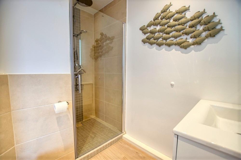 Bad mit moderner Ausstattung und großzügiger Dusche