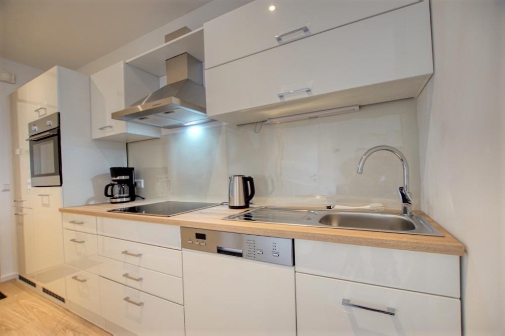 Küche vergrößert, komplett ausgestattet mit Spülmaschine, Backofen, Ceranfeld, Kühlschrank mit Gefrierfach und Kaffeemaschine