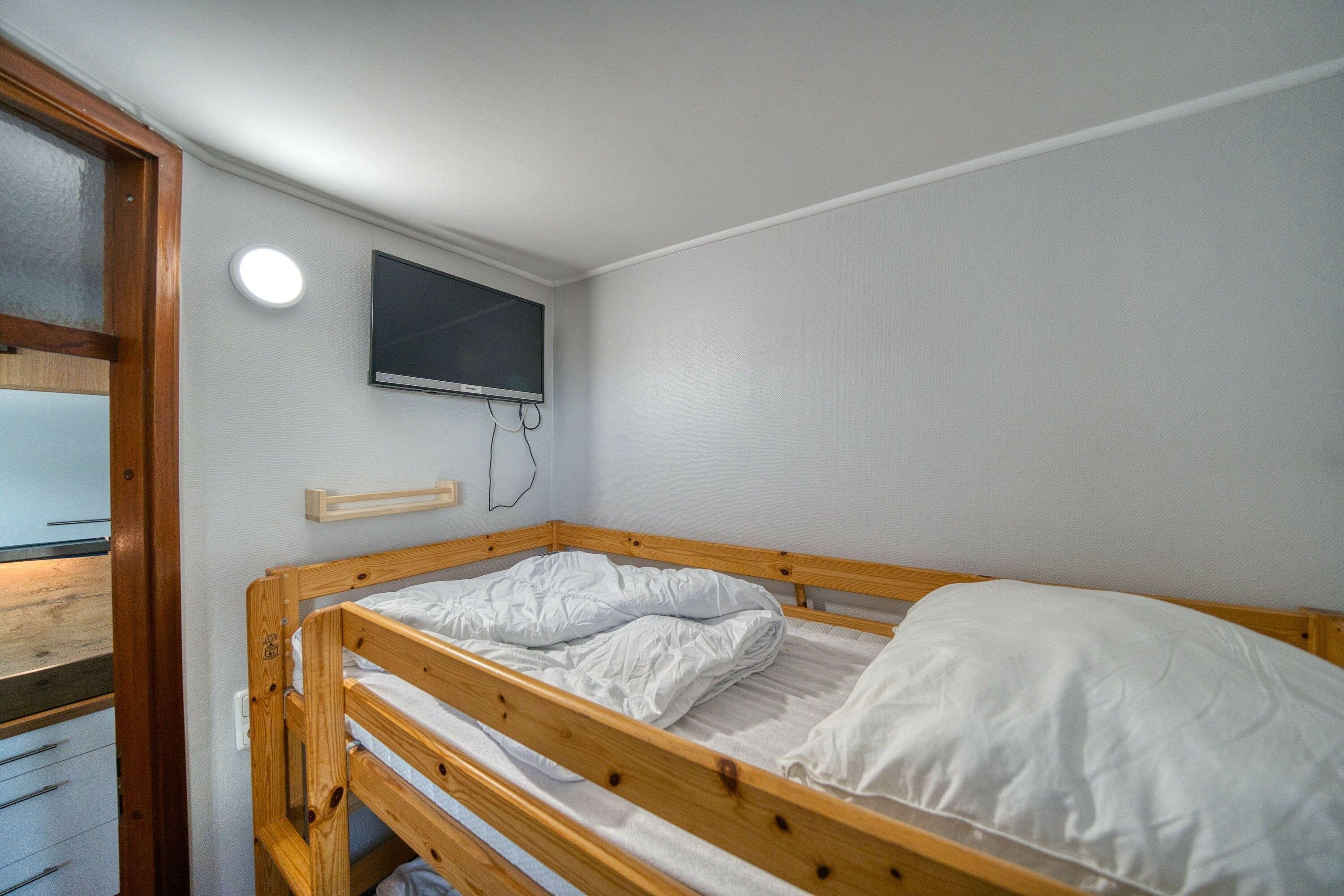 Separates Kinderzimmer mit Etagenbett, Verdunklungsrollos und eigenem Fernseher