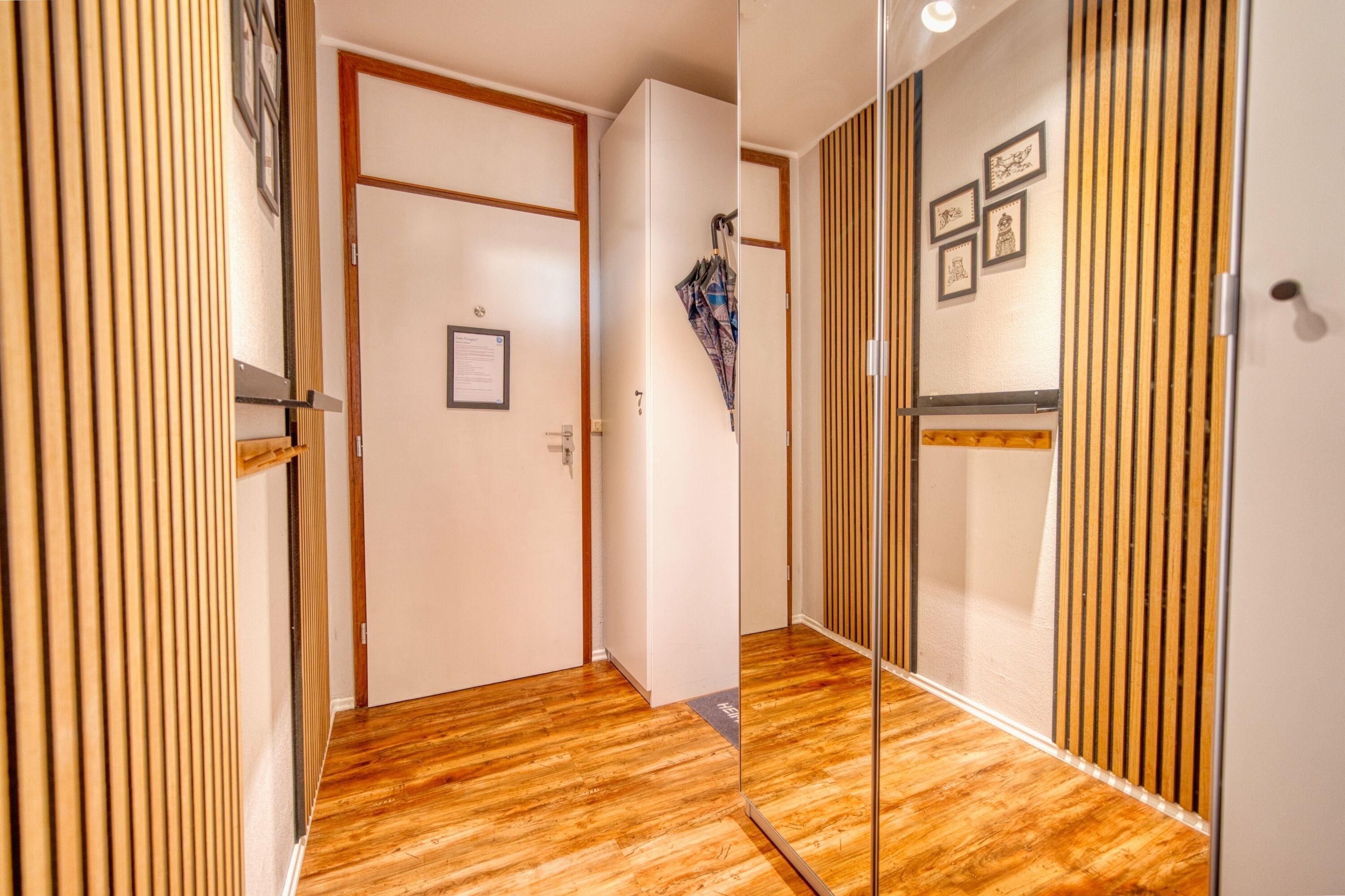 Die Wohnung liegt im Haus K Ferienpark, in der 8. Etage, mit sonnigem Südbalkon und einer weiten Aussicht über die Salzwiesen bis zur Ostsee. Der Strand ist ca. 300 m entfernt und über die hübsche Promenade – vorbei an Spielplatz und Minigolfanlage – bequem zu erreichen.