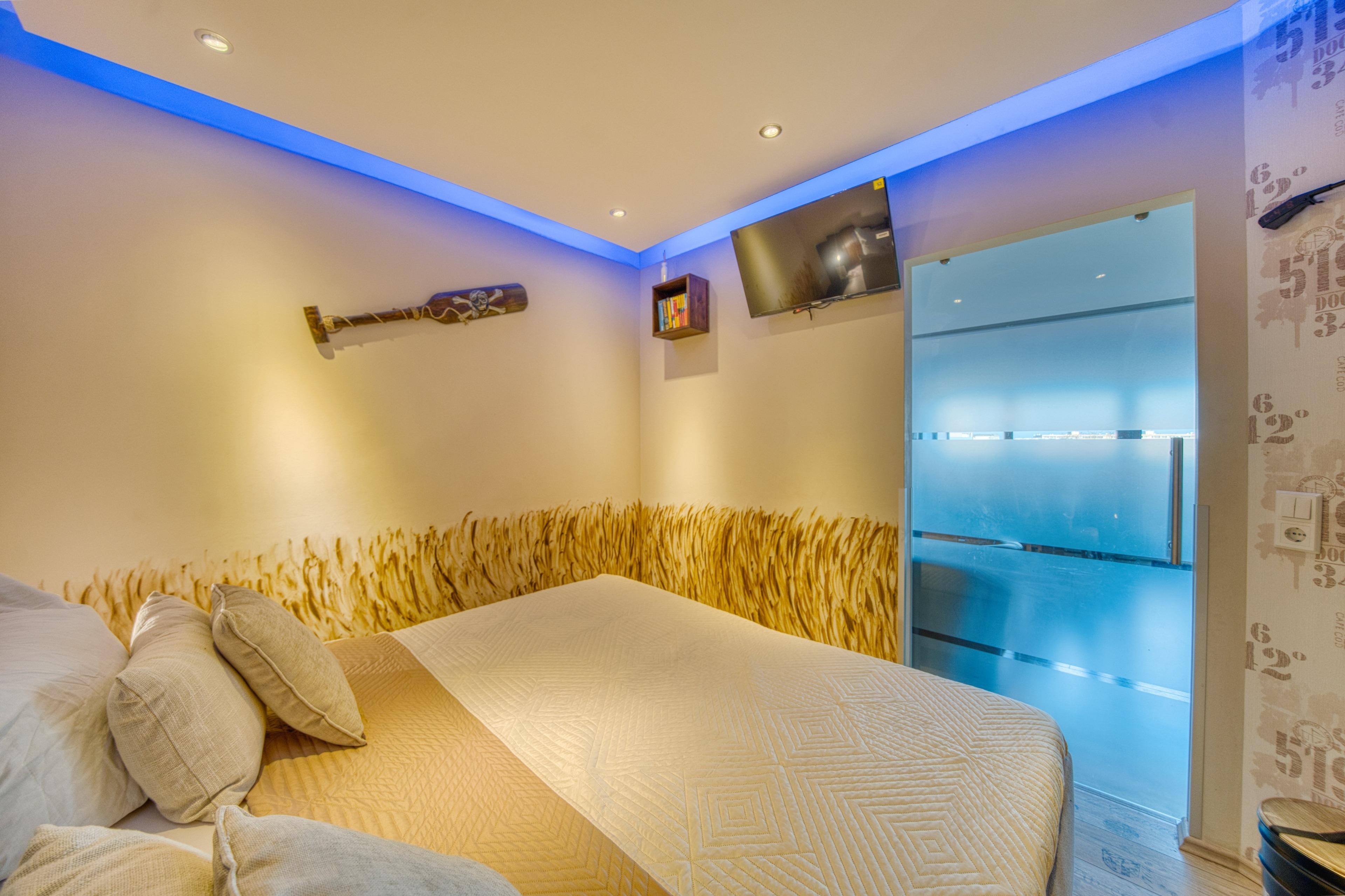 Separates Schlafzimmer mit TV und Doppelbett