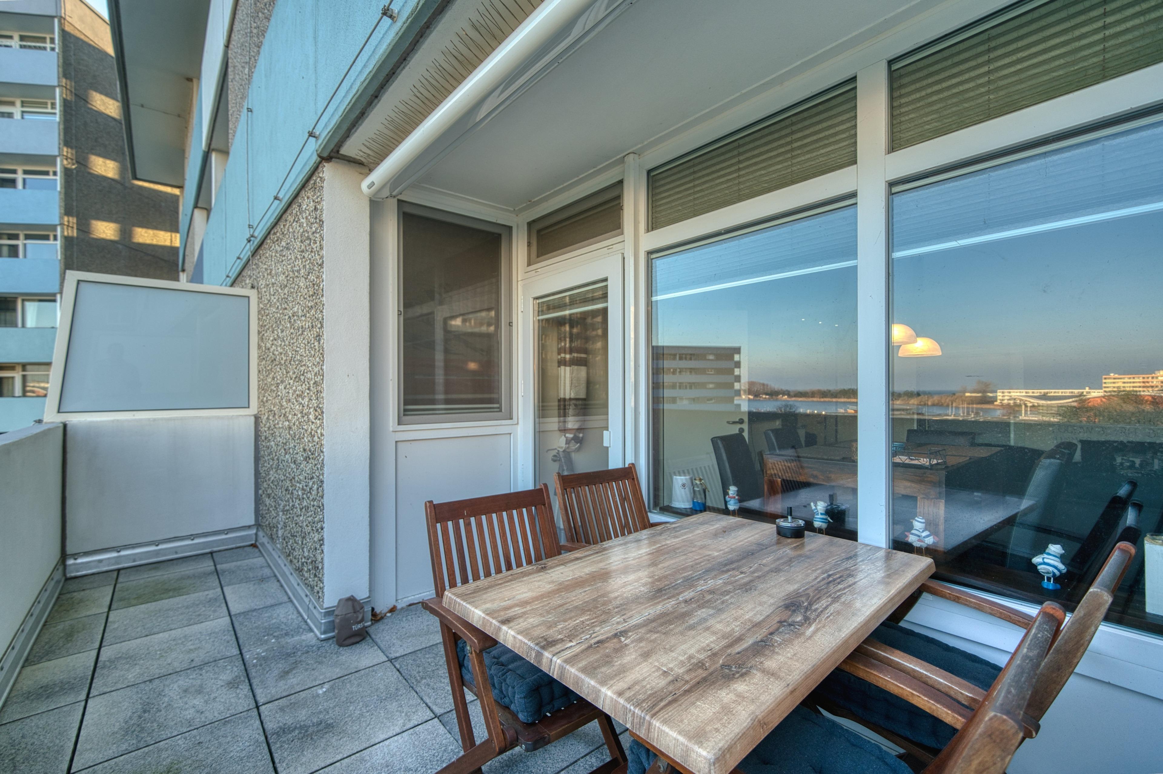 Die frisch renovierte Ferienwohnung befindet sich im Haus L des Ferienparks, in der 4. Etage, und bietet einen großzügigen Balkon mit Blick ins Grüne, zum Binnensee und mit etwas Ostseeblick. Genießen Sie entspannte Stunden an der frischen Seeluft.