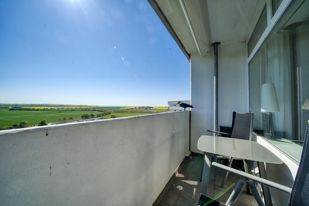 Die Wohnung liegt im Haus L Ferienpark, in der 8. Etage, mit Balkon zur Südseite, der viel Sonne und einen schönen Blick auf die Salzwiesen sowie die Ostsee bietet.