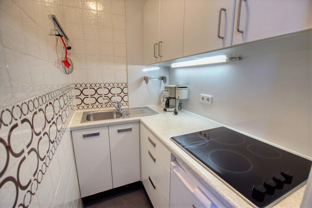 Komplett ausgestattete Küche mit Kühlschrank und Gefrierfach, 4-Plattenherd
