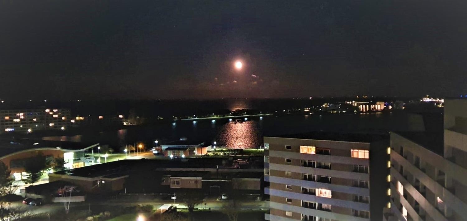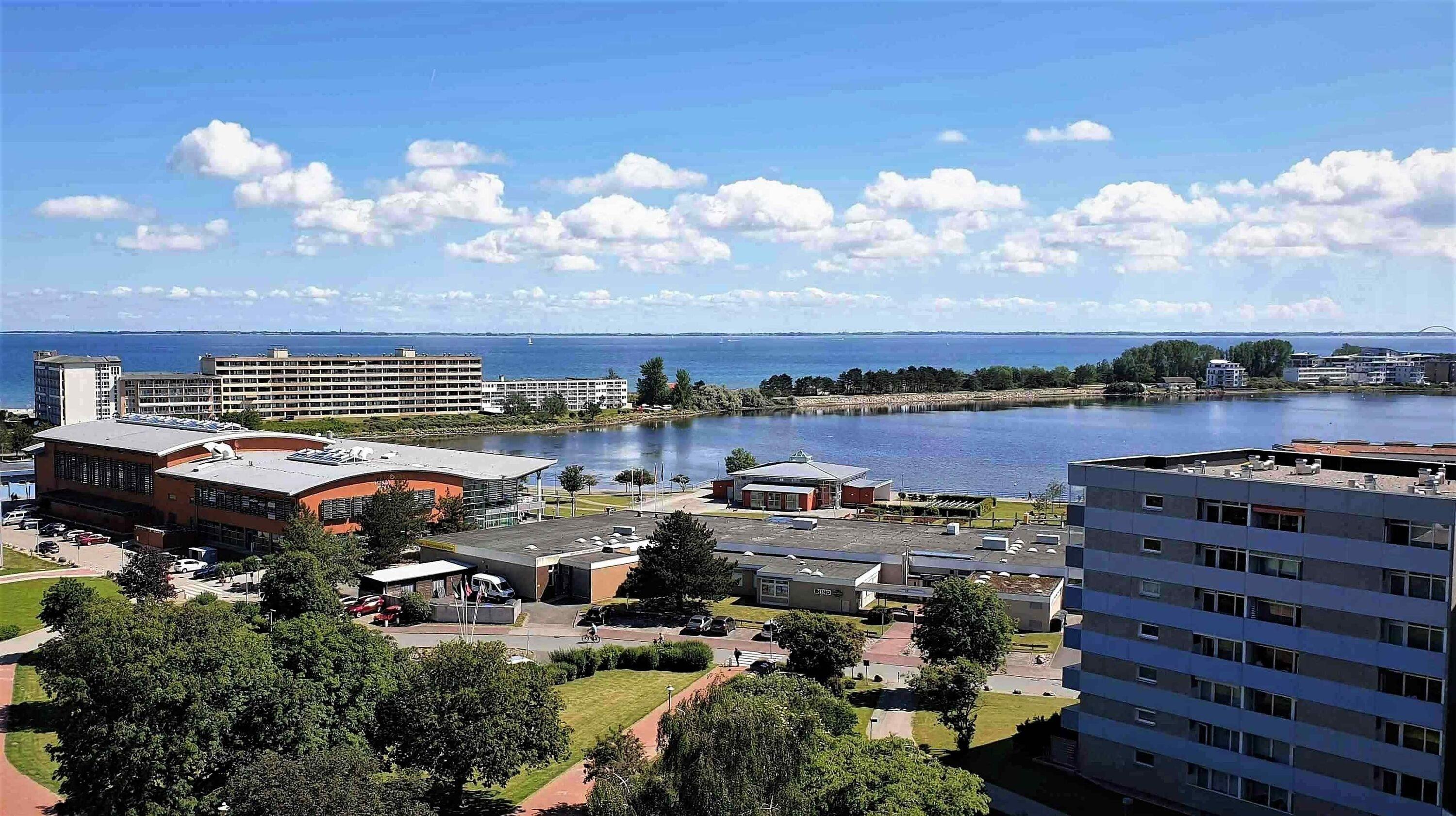 Die Ferienwohnung Segelwind für 2 Erwachsene + 2 Kinder oder 4 Erwachsene liegt im Ferienpark in der 10. Etage mit Balkon und bietet einen fantastischen Blick auf die Ostsee von Fehmarn bis zur Fehmarnsundbrücke.