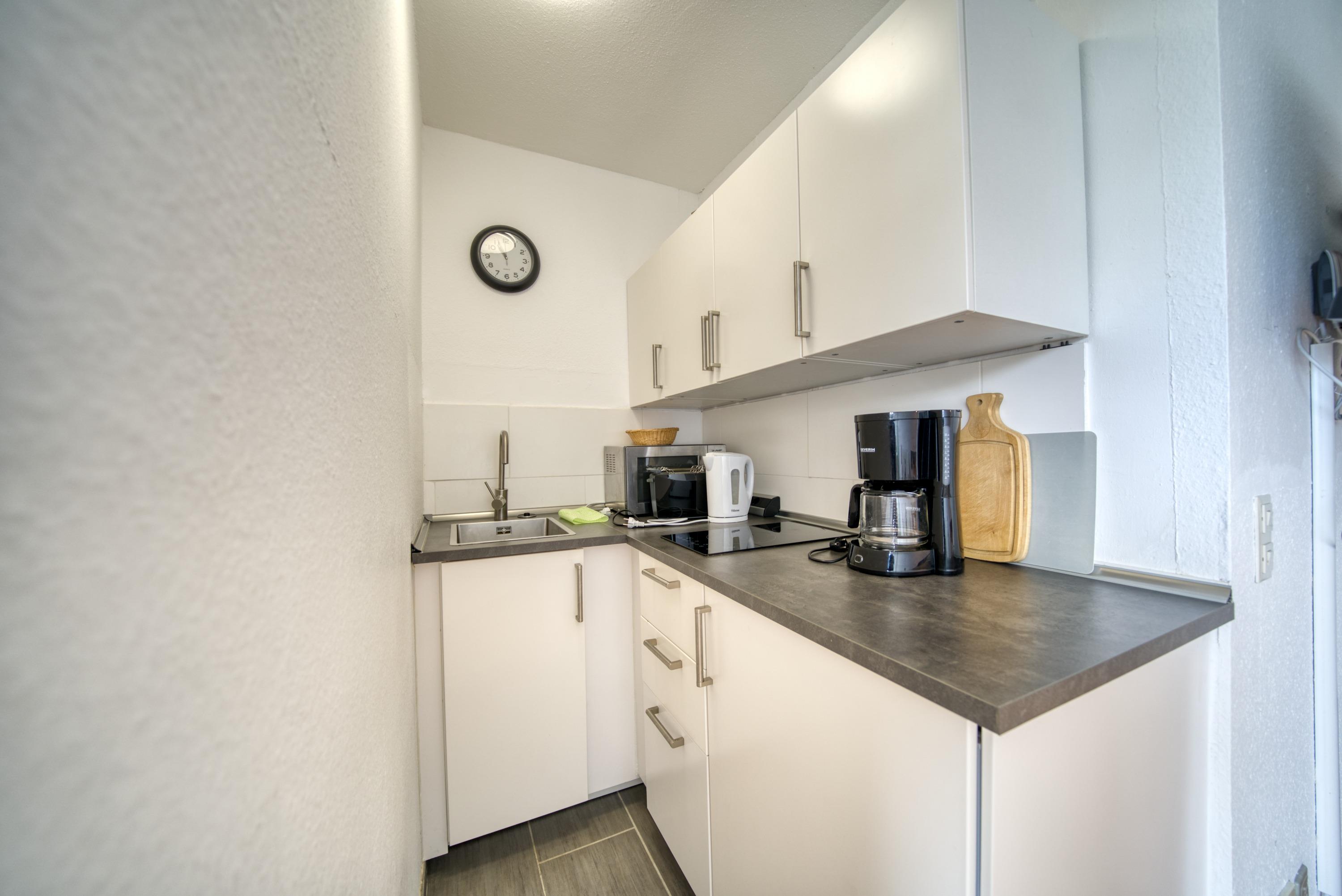 Funktional eingerichtete Küche mit Kühlschrank