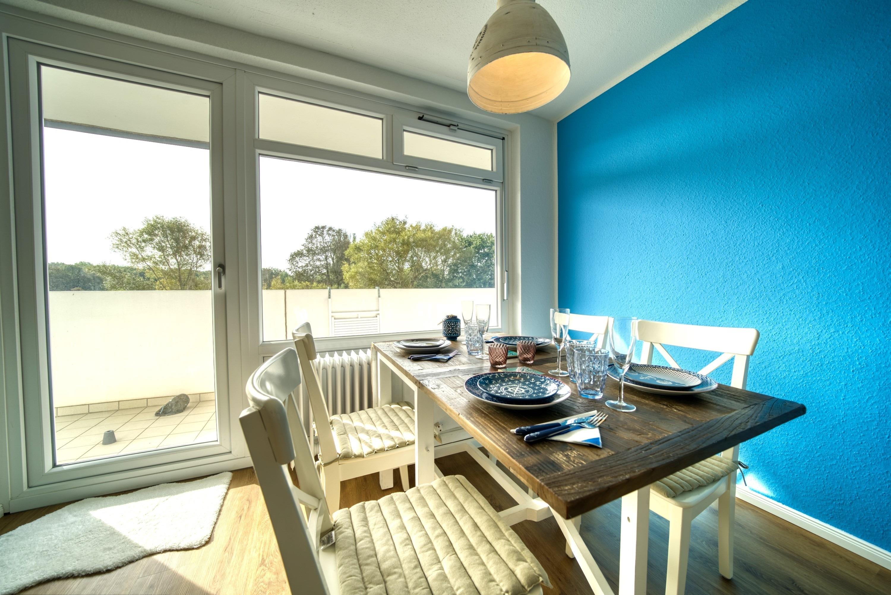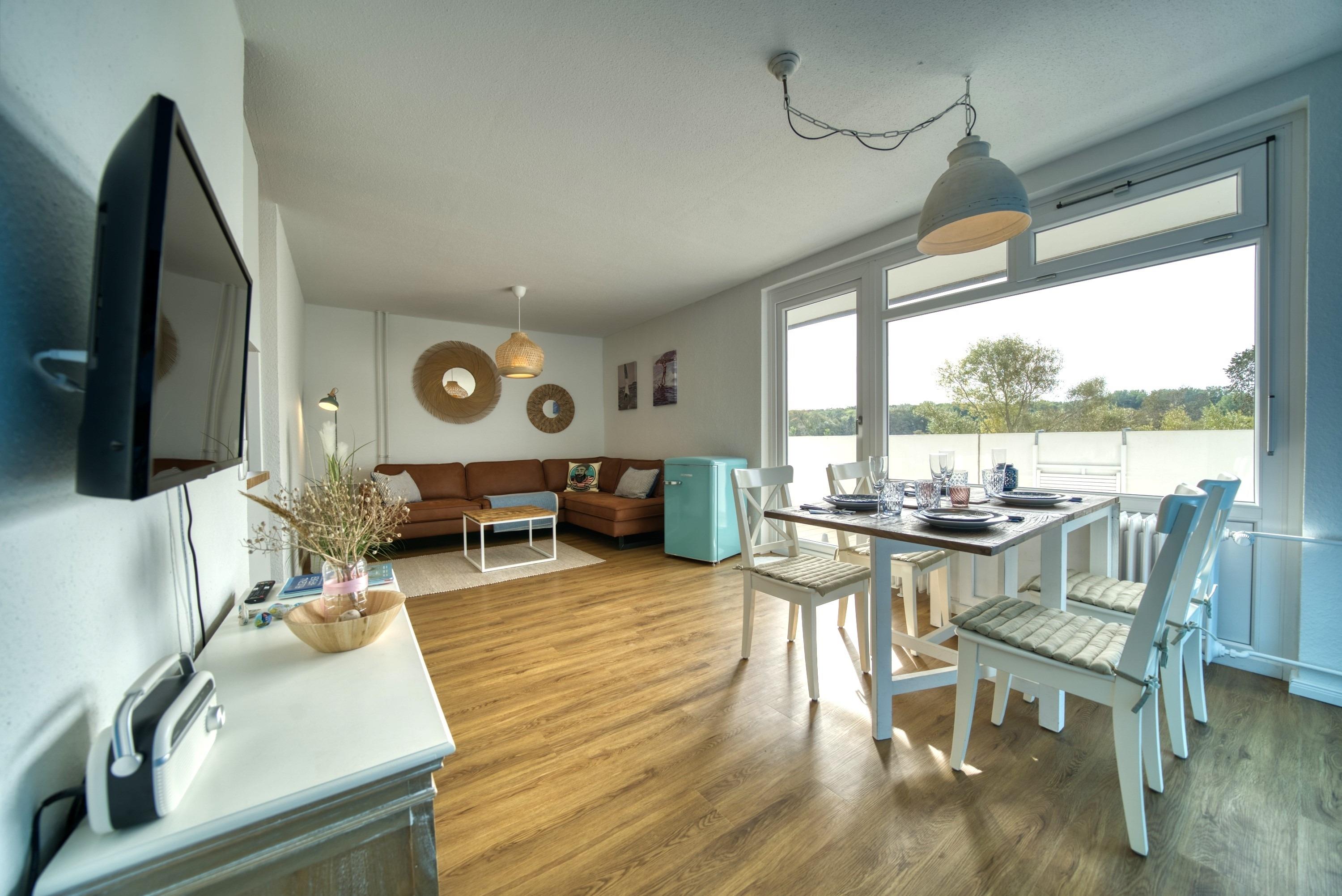 Willkommen in dieser lichtdurchfluteten und stilvoll eingerichteten Ferienwohnung in Haus M, 1. Etage, im beliebten Ferienpark Heiligenhafen. Auf großzügigen 59?m² Wohnfläche bietet die Wohnung ausreichend Platz für bis zu 3 Personen und begeistert mit einem großen Balkon zur Süd-Westseite – mit traumhaftem Blick auf die idyllischen Salzwiesen und die Galloway-Rinder.