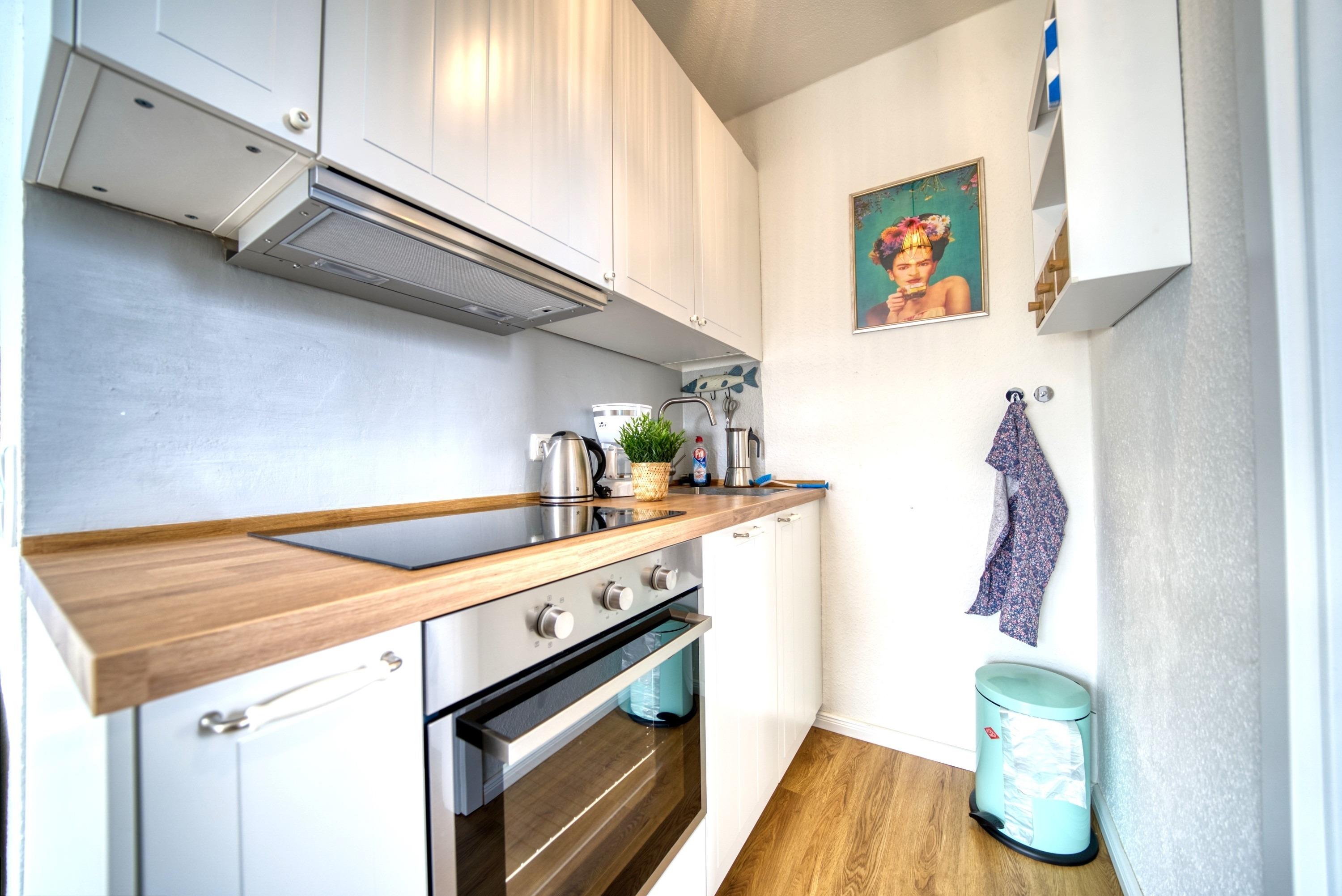 Moderne Küche mit Induktionsherd, Backofen, Geschirrspüler, Kühlschrank mit Gefrierfach und weiteren Extras