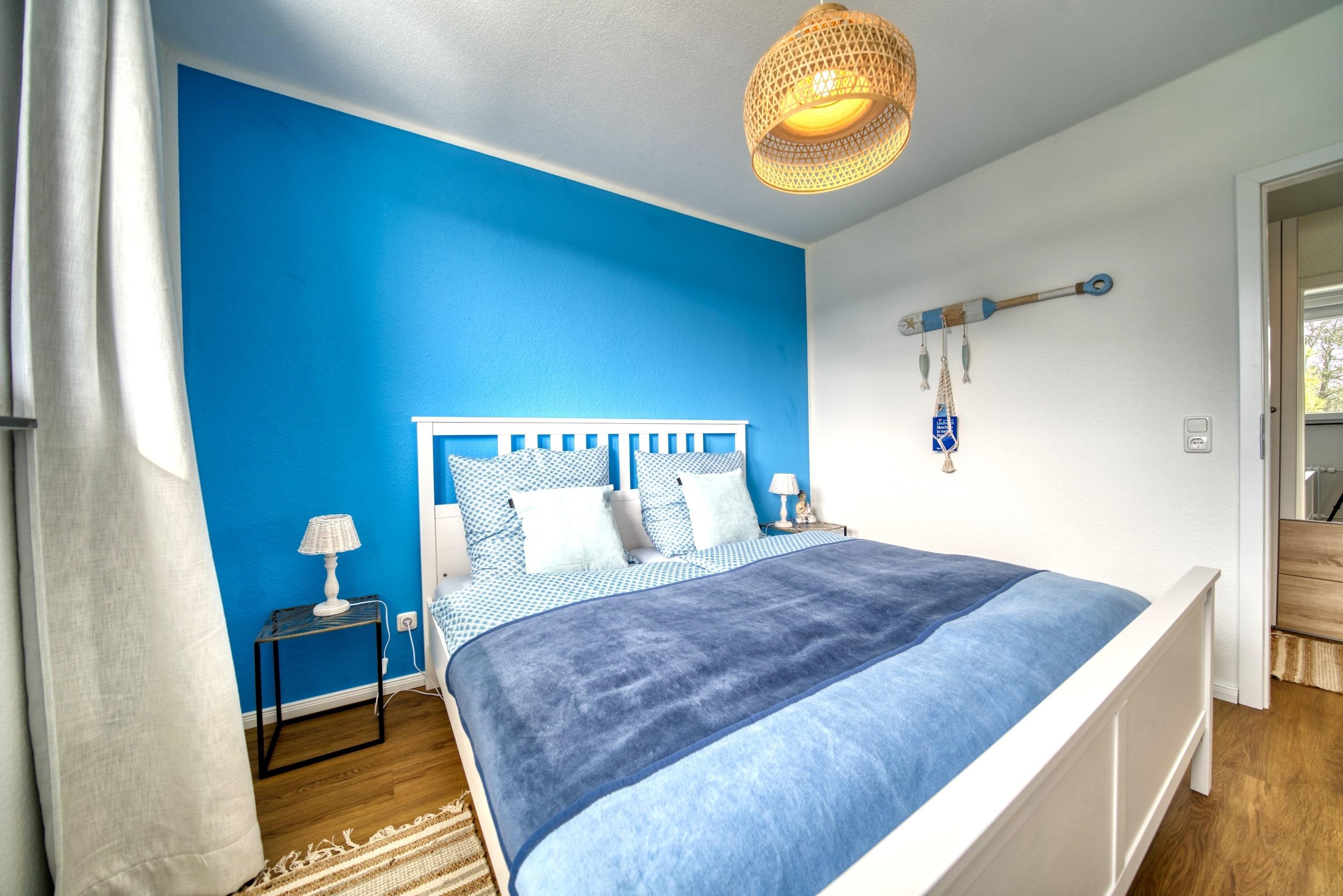 Separates Schlafzimmer mit Doppelbett und Fenster
