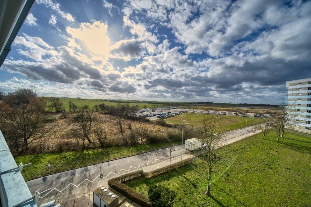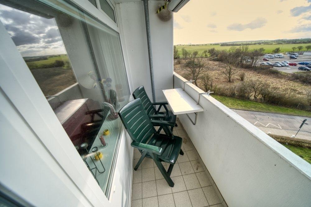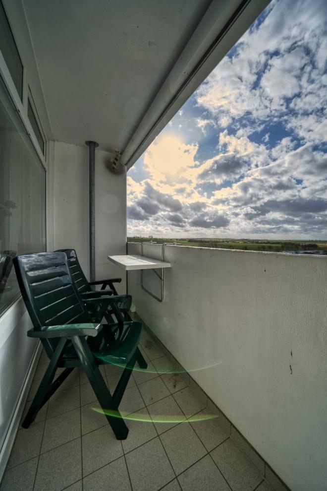 Helle Ferienwohnung im Haus M Ferienpark, 4. Etage, mit Balkon zur Südwestseite. Genießen Sie die Sonne und einen schönen Blick auf die Ostsee.