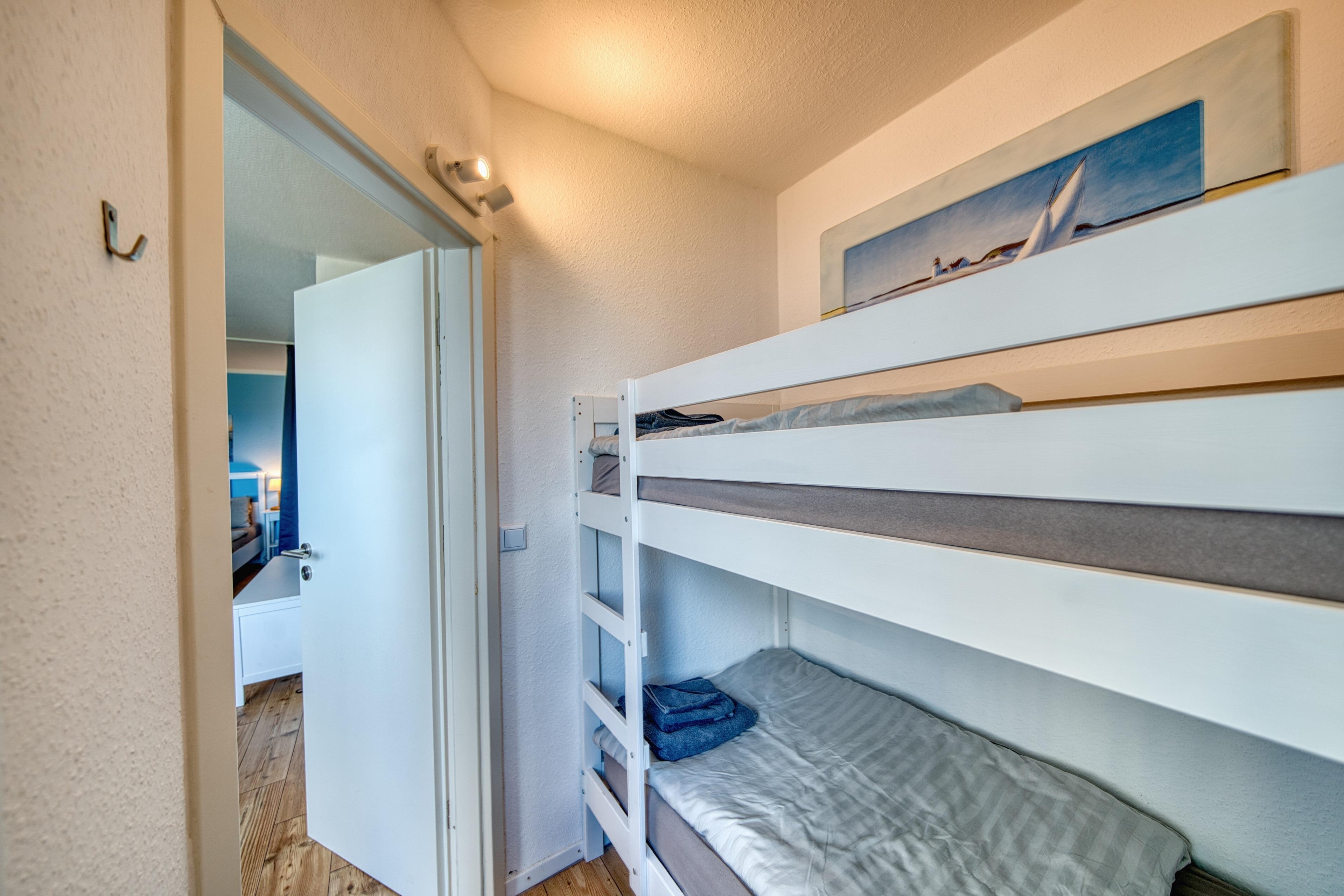 Separates Schlafzimmer mit Etagenbett und Elektroheizung – perfekt für Kinder
