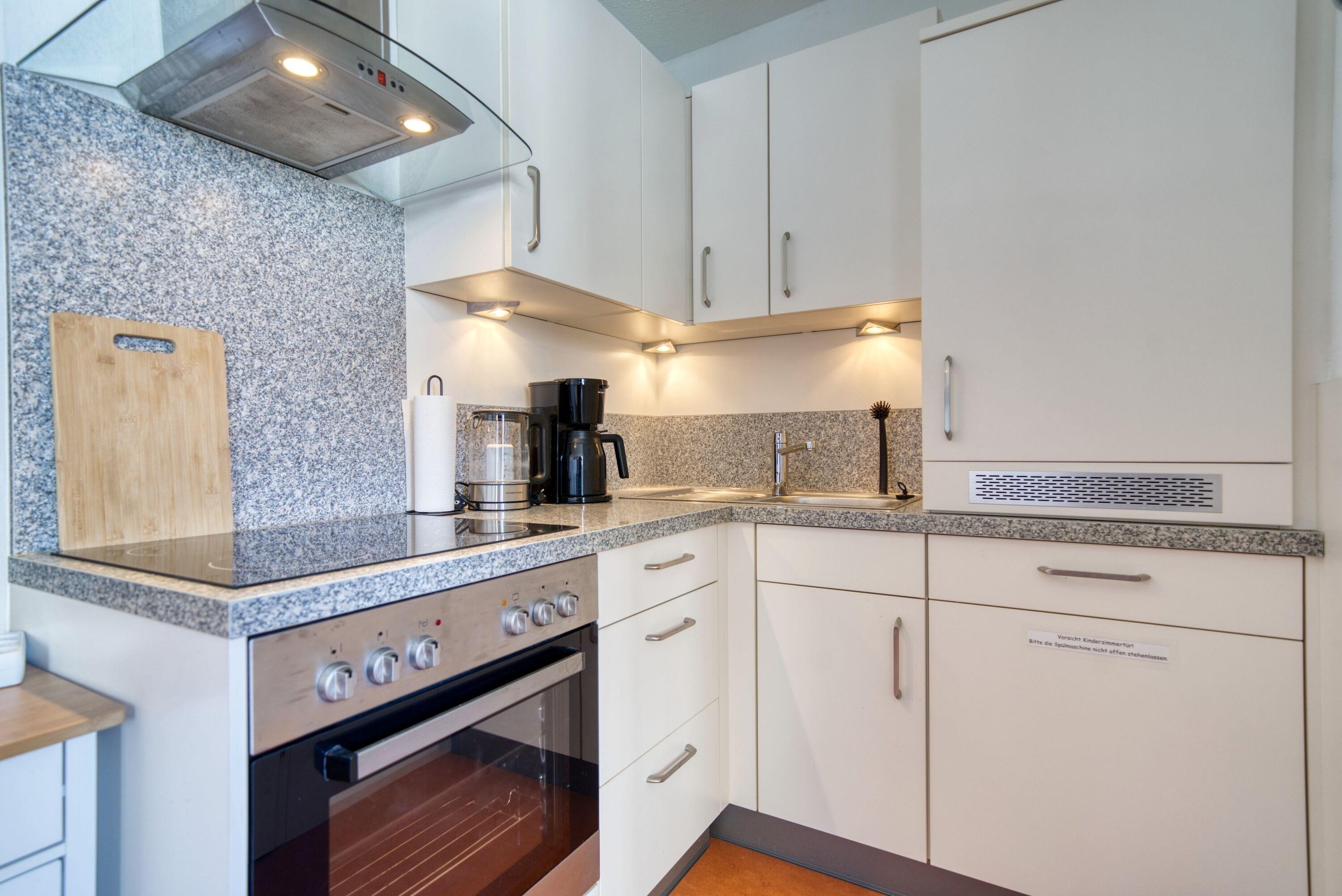 Voll ausgestattete Küche mit Geschirrspüler, Backofen, Ceranfeld (4 Kochfelder), Kühlschrank mit Eisfach