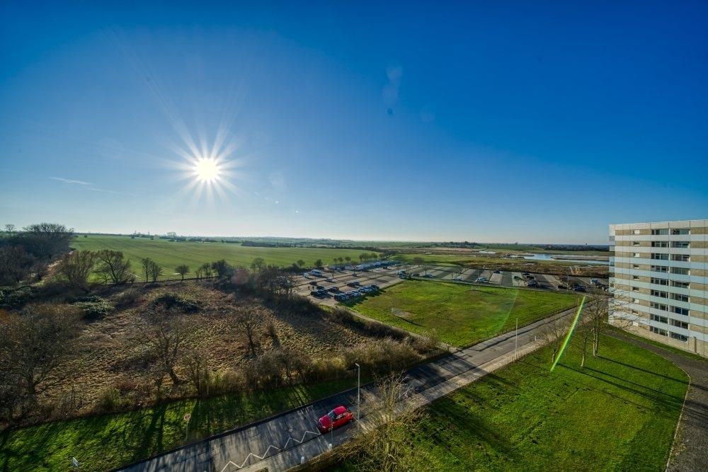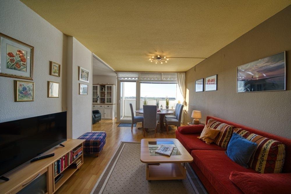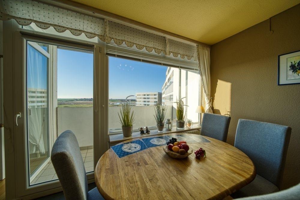 Helle und gemütliche Ferienwohnung im Haus M Ferienpark, 7. Etage, mit Balkon zur Westseite und schönem Blick auf die Salzwiesen Richtung Hohwachter Bucht. Ideal für einen erholsamen Urlaub an der Ostsee.
