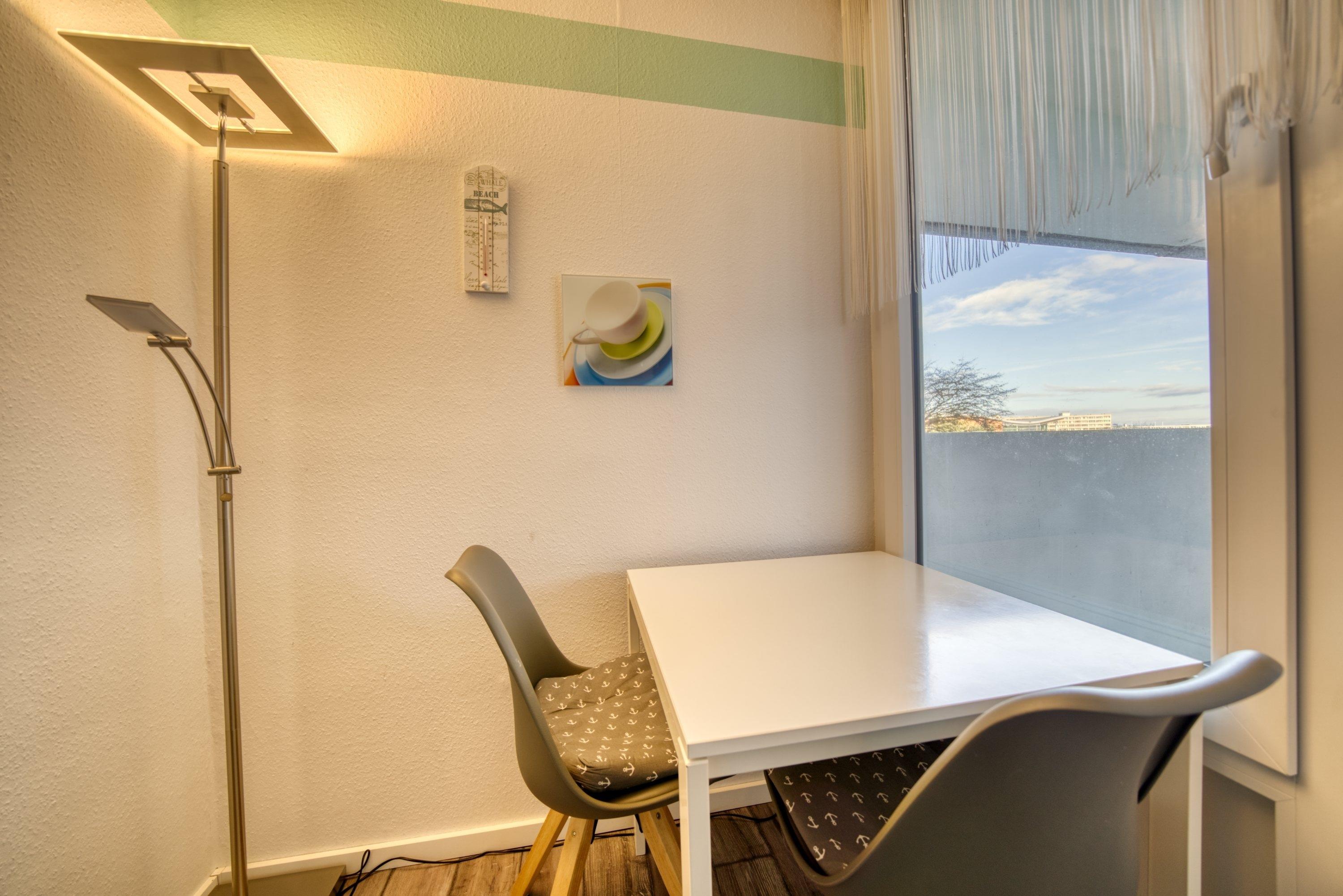 Unsere Ferienwohnung in Heiligenhafen eignet sich sehr gut für entspannte Tage oder einen tollen Urlaub an der Ostsee. Die 38?qm große, frisch renovierte Wohnung bietet Platz für 1–2 Erwachsene. Sie befindet sich im Haus N des Ferienparks und liegt im 1. Geschoss mit Balkon zum Innenhof, der einen schönen Blick auf die Grünanlagen bietet.
