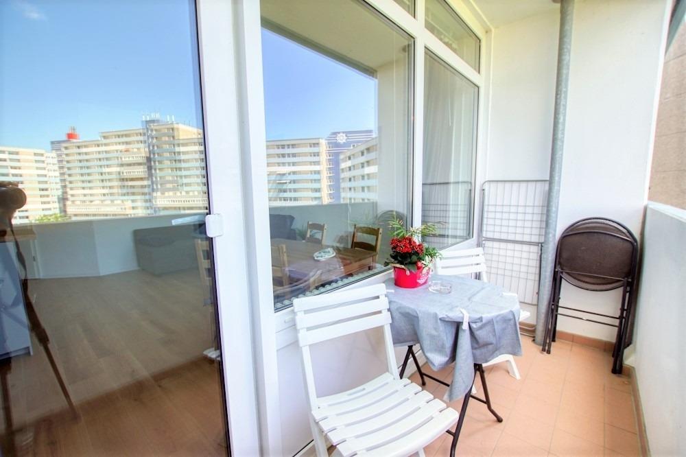 Die Wohnung liegt im Haus N Ferienpark, in der 6. Etage, mit Balkon zum Innenhof, der einen schönen Blick auf die Grünanlagen und die Ostsee bietet.